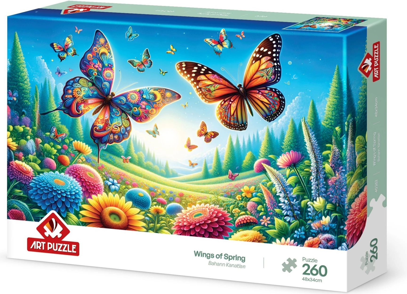 Puzzle „Skrzydła wiosny” marki ART PUZZLE wprowadzą świeżą, wiosenną atmosferę do Twojego domu. Motyw pełen barw i detali doskonale sprawdzi się podczas chwil relaksu i wspólnych rodzinnych wieczorów. Dzięki 260 elementom stanowią przyjemne wyzwanie dla dzieci w wieku szkolnym oraz dorosłych.