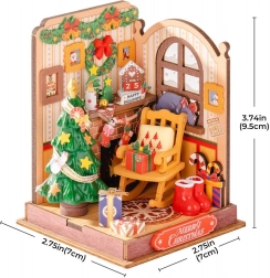 Ten szczegółowy zestaw DIY wnosi urok Świąt do każdego wnętrza. Przy kominku wisi kalendarz z datą 25 grudnia, wokół połyskują girlandy i wieniec, pali się świeczka, a pod choinką czekają prezenty. Scenę uzupełnia bujany fotel dla dziadka, zdjęcia na ścianach, słodkości i kot odpoczywający przy oknie.