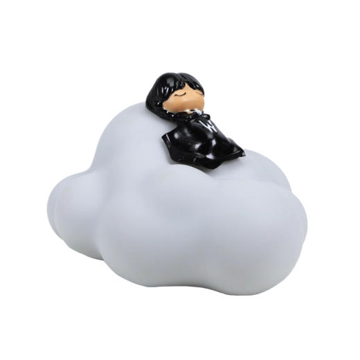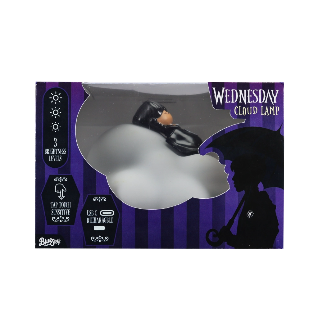 Stylowa lampka biurkowa w kształcie chmurki w oficjalnym licencjonowanym designie WEDNESDAY zachwyci każdego fana. Oferuje delikatne, kojące światło do pokoju dziecięcego, sypialni i kącika do pracy, a dzięki zasilaniu USB łatwo podłączysz ją do adaptera, powerbanku lub laptopa.