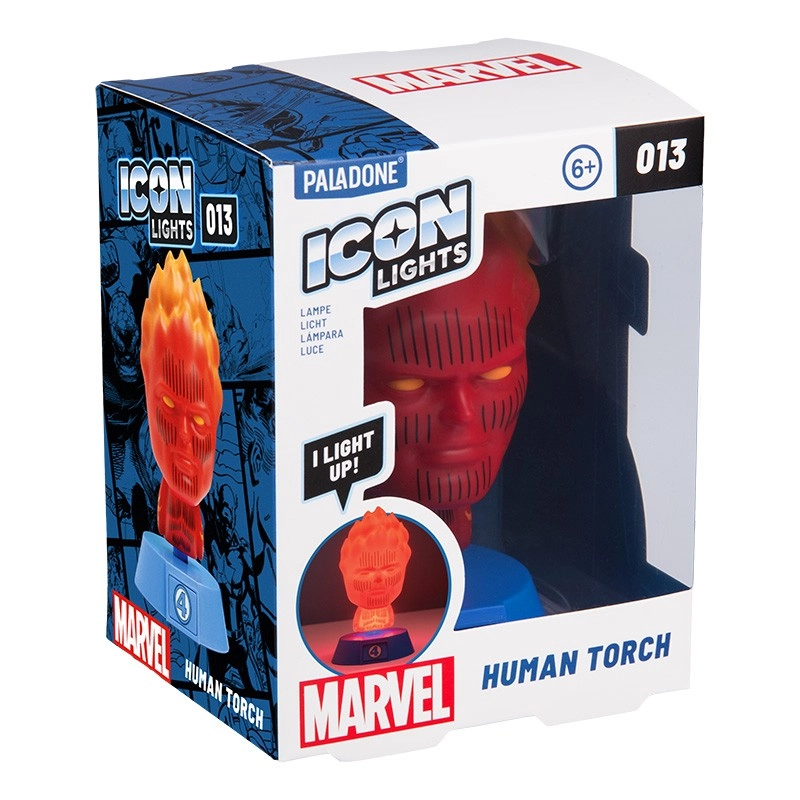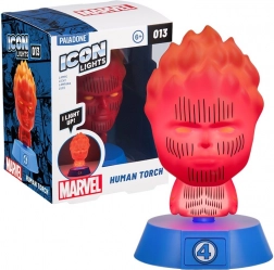 Stylowa lampka nocna z motywem FANTASTYCZNA CZWÓRKA – Human Torch zapewnia delikatne, ambientowe światło tworzące przytulną atmosferę. Świetnie sprawdzi się na szafce nocnej, półce i biurku, a także jako prezent dla fanów komiksów. Zasilanie: 2× bateria AAA (brak w zestawie).