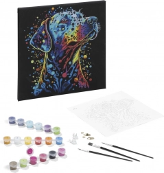Odkryj relaksujące tworzenie z kreatywnym zestawem do malowania po numerach. Na czarnym płótnie z motywem psa z łatwością wyczarujesz obraz krok po kroku dzięki ponumerowanym polom i dołączonym farbom. Proste kolorowanie, dokładne rezultaty i imponujący kontrast na czarnym tle gwarantują radość z tworzenia oraz piękną dekorację wnętrza.