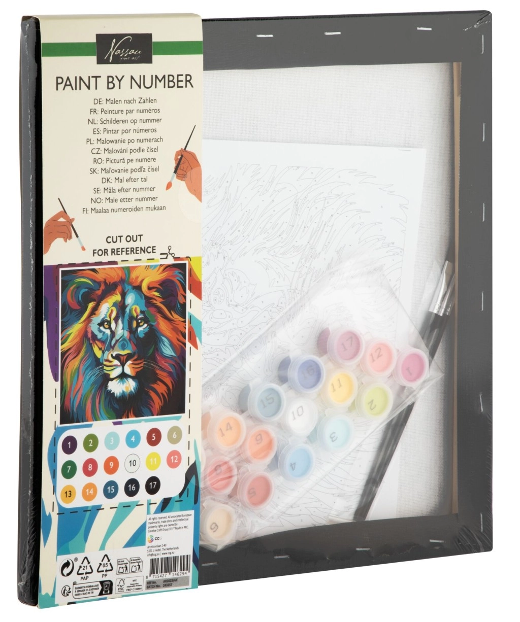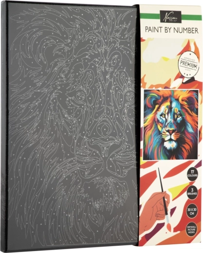 Ten kreatywny zestaw z motywem majestatycznego lwa na czarnym płótnie to idealny wybór dla dzieci i dorosłych, którzy chcą tworzyć bez skomplikowanych przygotowań. Kontrastowe czarne tło podkreśla kolory, a gotowy obraz prezentuje się jak prawdziwe dzieło sztuki. Wystarczy podążać za numerami i obserwować, jak motyw krok po kroku zmienia się w ukończony obraz.