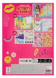 Zeszyt zawiera naklejki, dzięki którym dzieci mogą uzupełniać projekty modowe, scenki i rozwiązania zadań. Praktyczny format A4 jest idealny do plecaka i na dłuższe podróże.