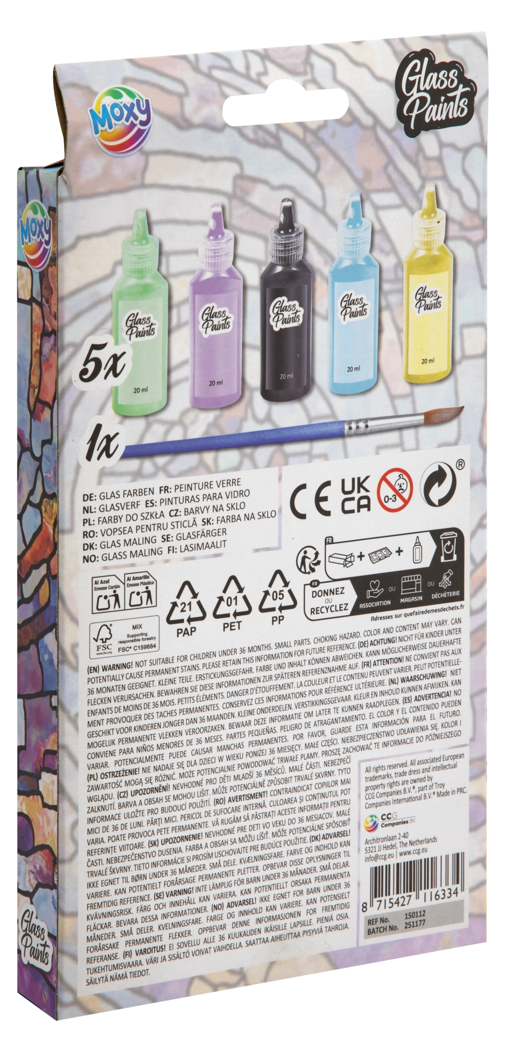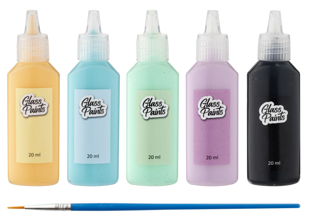 - 5× farba do szkła (20 ml) i 1× pędzelek
