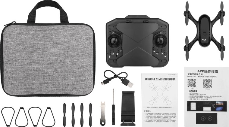 - Kompaktowe wymiary drona 9×9×4 cm, łatwy do przenoszenia w kontrolerze.