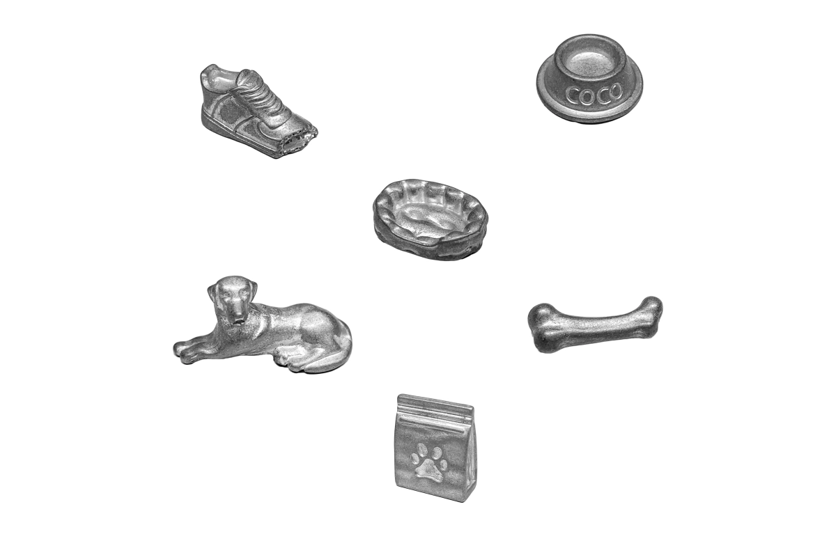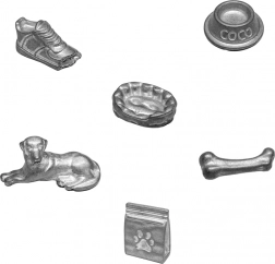 Stylowe metalowe pionki z psim motywem dodają grze autentyczności i wytrzymają nawet częste granie.