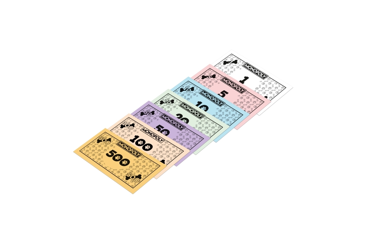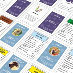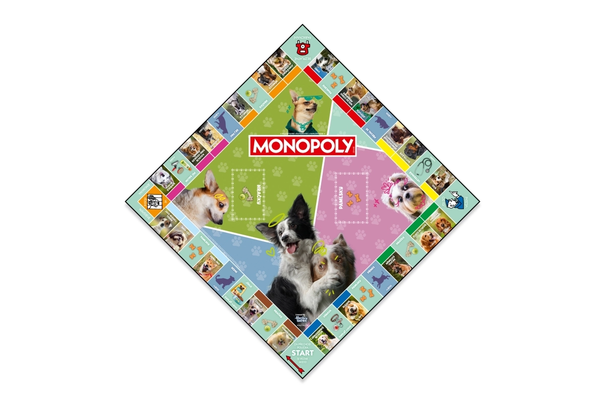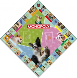 Kolorowa, szczegółowo ilustrowana plansza ze zdjęciami ras i klasycznymi polami Monopoly potęguje klimat gry i zachwyci każdego psiarza.