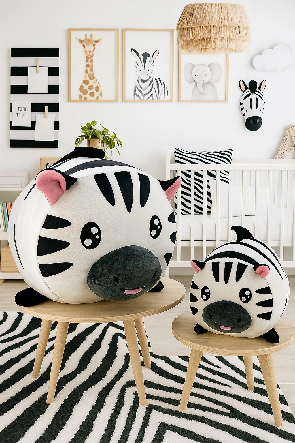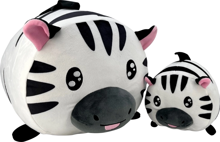 Zestaw pluszowych zebr w rozmiarach 20 cm i 40 cm ucieszy dzieci w każdym wieku. Miękki plusz, urocze detale i obłe kształty wprost zachęcają do przytulania. Mniejsza zebra świetnie sprawdzi się do wózka lub łóżeczka, większa zapewni oparcie jako poduszka do auta lub na kanapę.