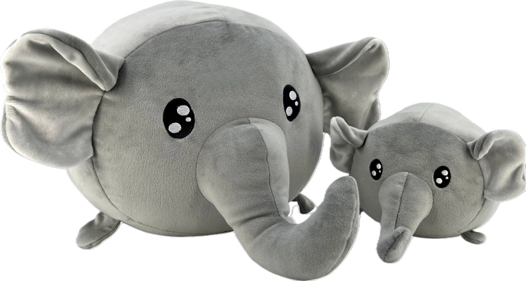Ten zestaw pluszowych słoni w uniwersalnym szarym kolorze został zaprojektowany do codziennego przytulania, zabawy i odpoczynku. Wysokiej jakości miękka plusz jest delikatna dla dziecięcej skóry, a bezpieczne haftowane oczy gwarantują spokojną zabawę bez drobnych części. Mniejszy słoń (20 cm) to świetny towarzysz do łóżeczka, natomiast większy (40 cm) zmienia się w wygodną poduszeczkę do auta lub stylową dekorację do pokoju dziecięcego.