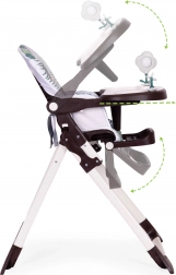 Szeroka, regulowana i dwuwarstwowa tacka z wyjmowaną górną wkładką łatwo się czyści. Zintegrowane zabawki zajmą dziecko w oczekiwaniu na posiłek i wspierają rozwój motoryki.