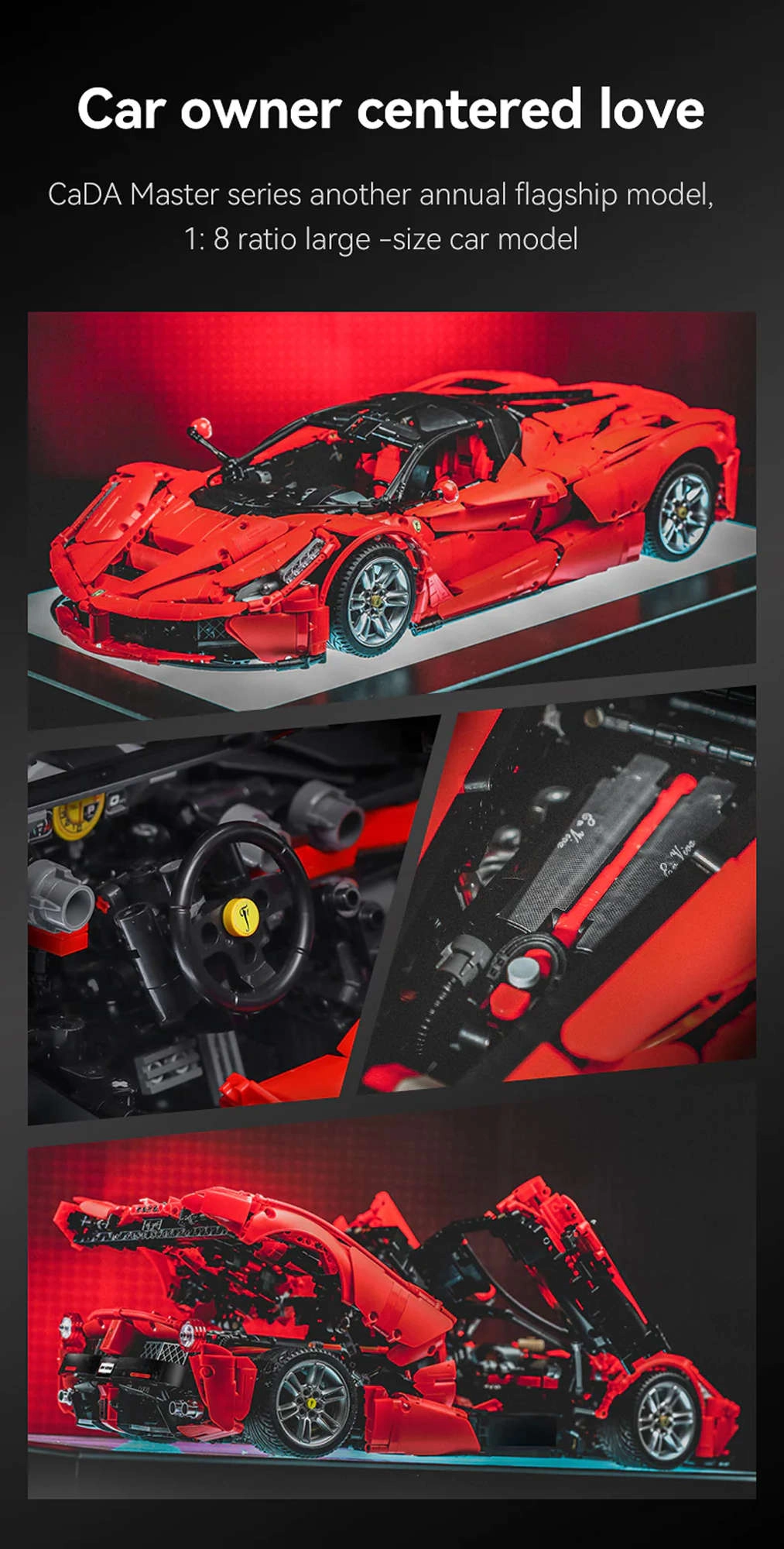 Zestaw oferuje bogate doświadczenie stopniowego składania według szczegółowej instrukcji krok po kroku. Elementy są kompatybilne z innymi zestawami CaDA, więc z łatwością rozbudujesz projekt lub dodasz własne modyfikacje. Gotowy model ma wymiary około 60 × 27 × 13,5 cm i zachwyca wyrazistym czerwonym nadwoziem z czarnymi akcentami oraz 4 gumowymi kołami dla płynnego ruchu po różnych powierzchniach.