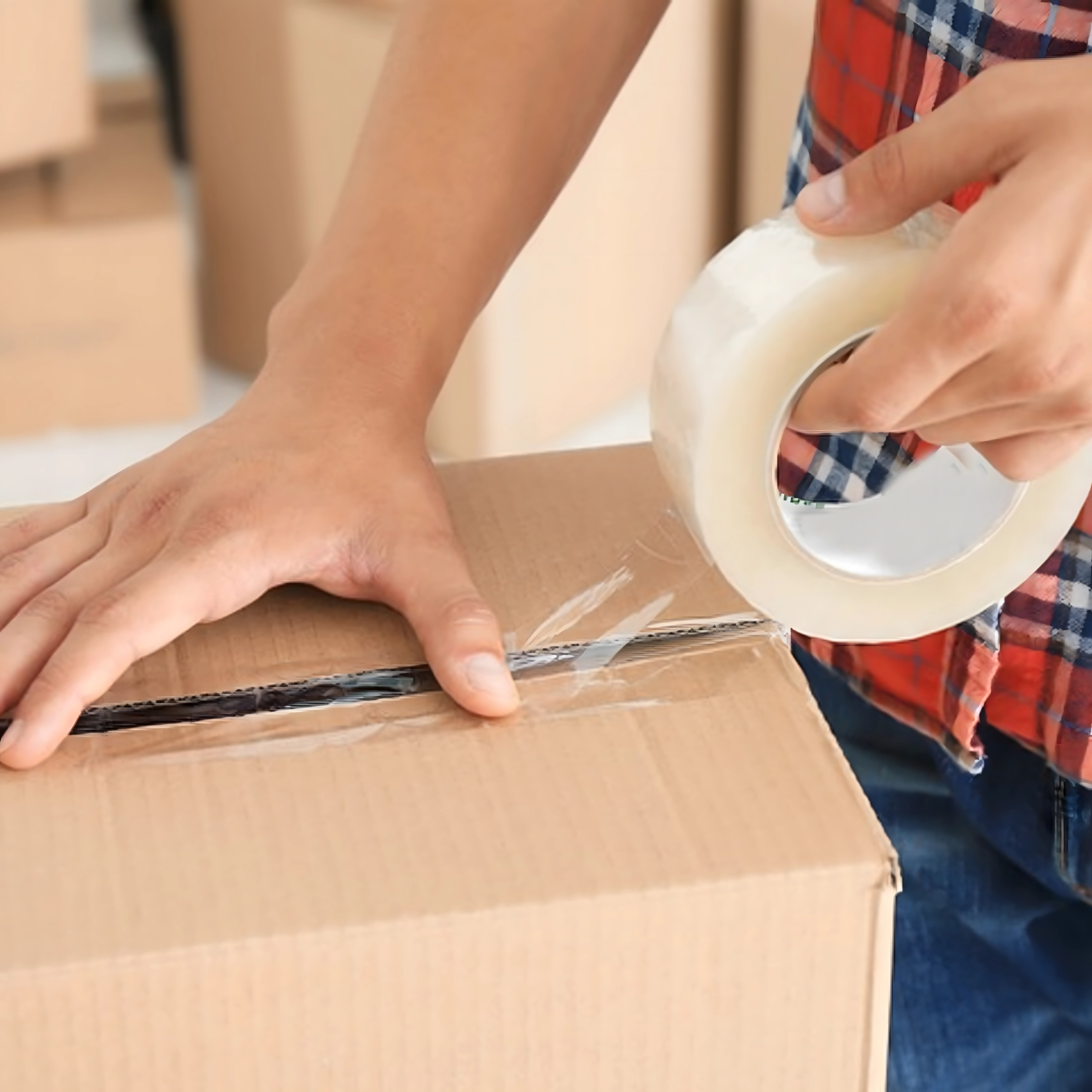 Przezroczysta taśma o wysokiej przyczepności niezawodnie zamyka kartonowe pudełka i chroni zawartość podczas transportu oraz przechowywania.