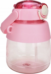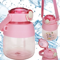 Dziecięca butelka na wodę ze słomką i paskiem 1 l – różowa