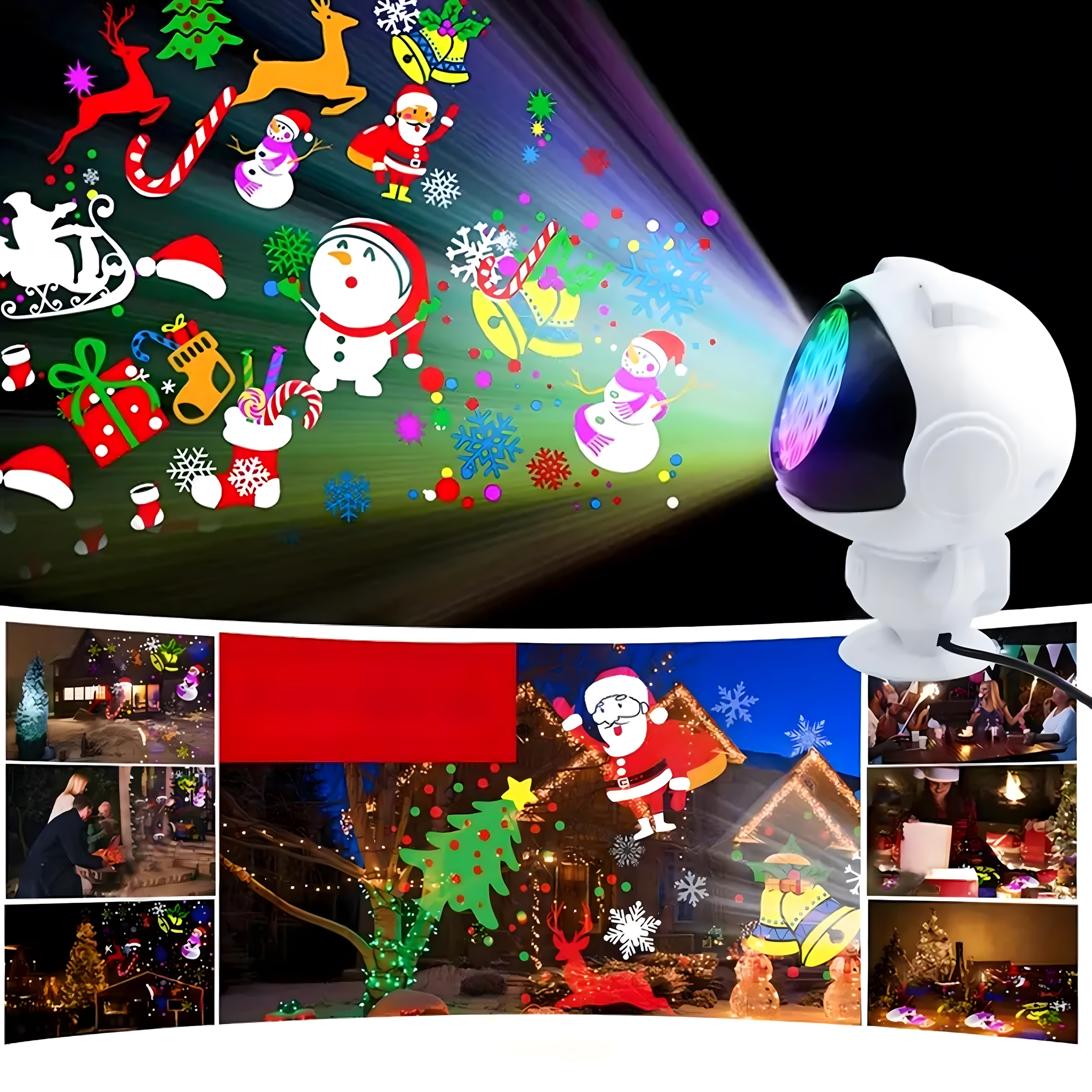 Astronautyczna lampka projekcyjna LED z motywami świątecznymi
