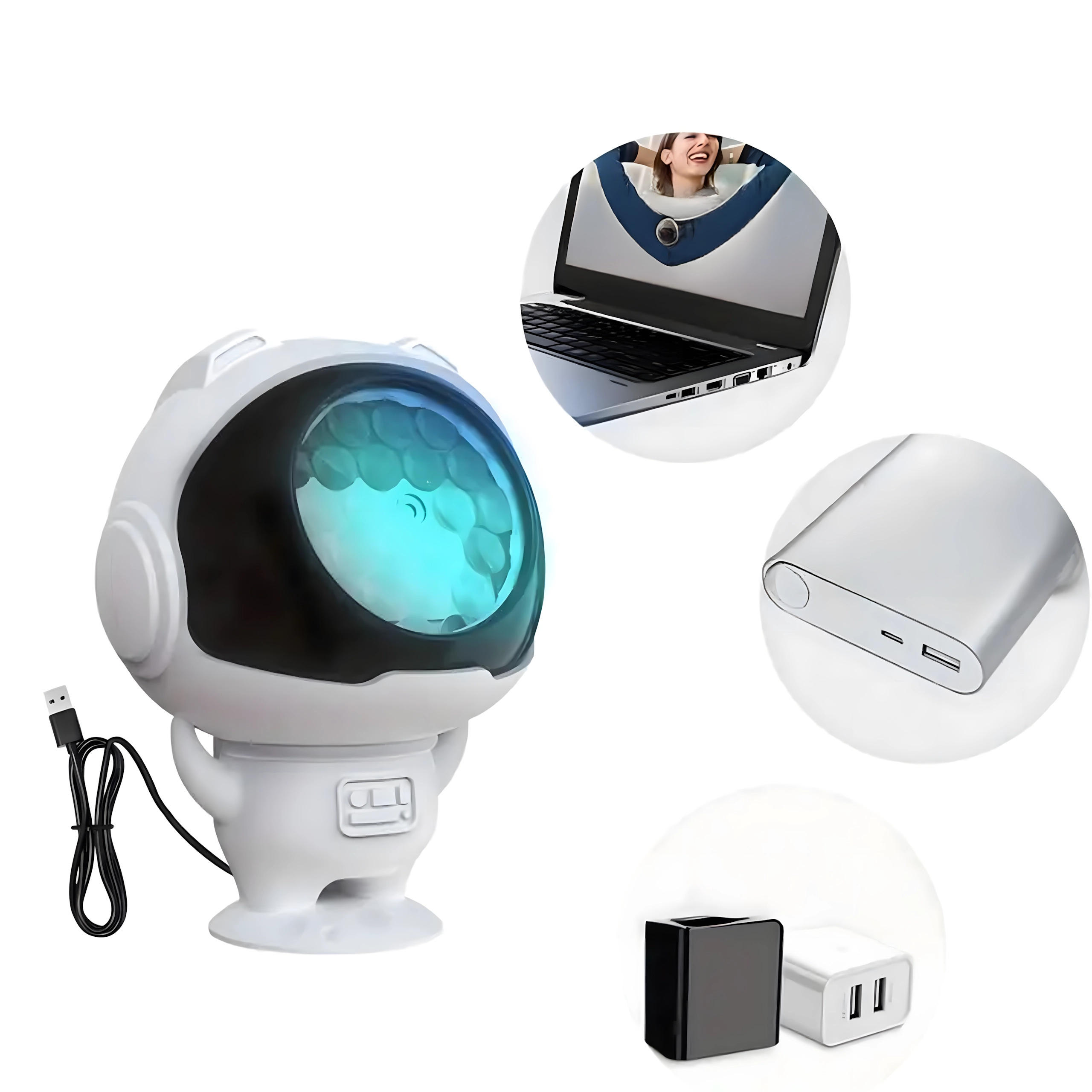 Projektor w kształcie astronauty, kabel zasilający USB (jeśli wchodzi w skład zestawu)