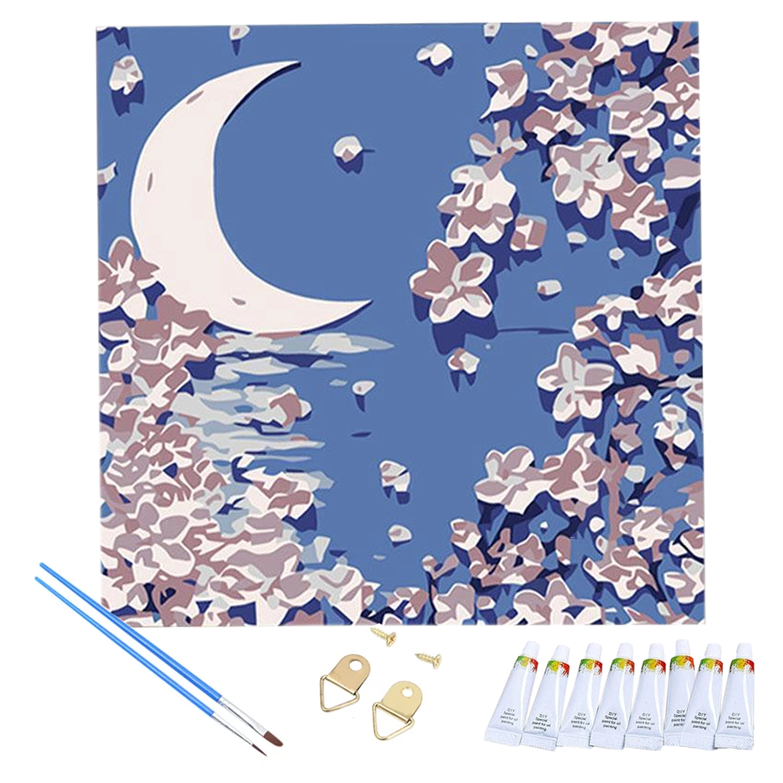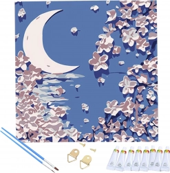Kompletny zestaw z ponumerowanym płótnem, farbami akrylowymi, pędzlami i akcesoriami do zawieszenia. Zacznij tworzyć od razu po rozpakowaniu.