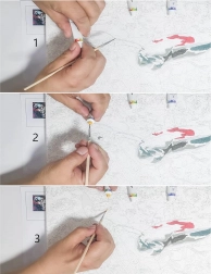 - Zestaw pędzli oraz haczyków do zawieszenia dla łatwej ekspozycji gotowego obrazu.