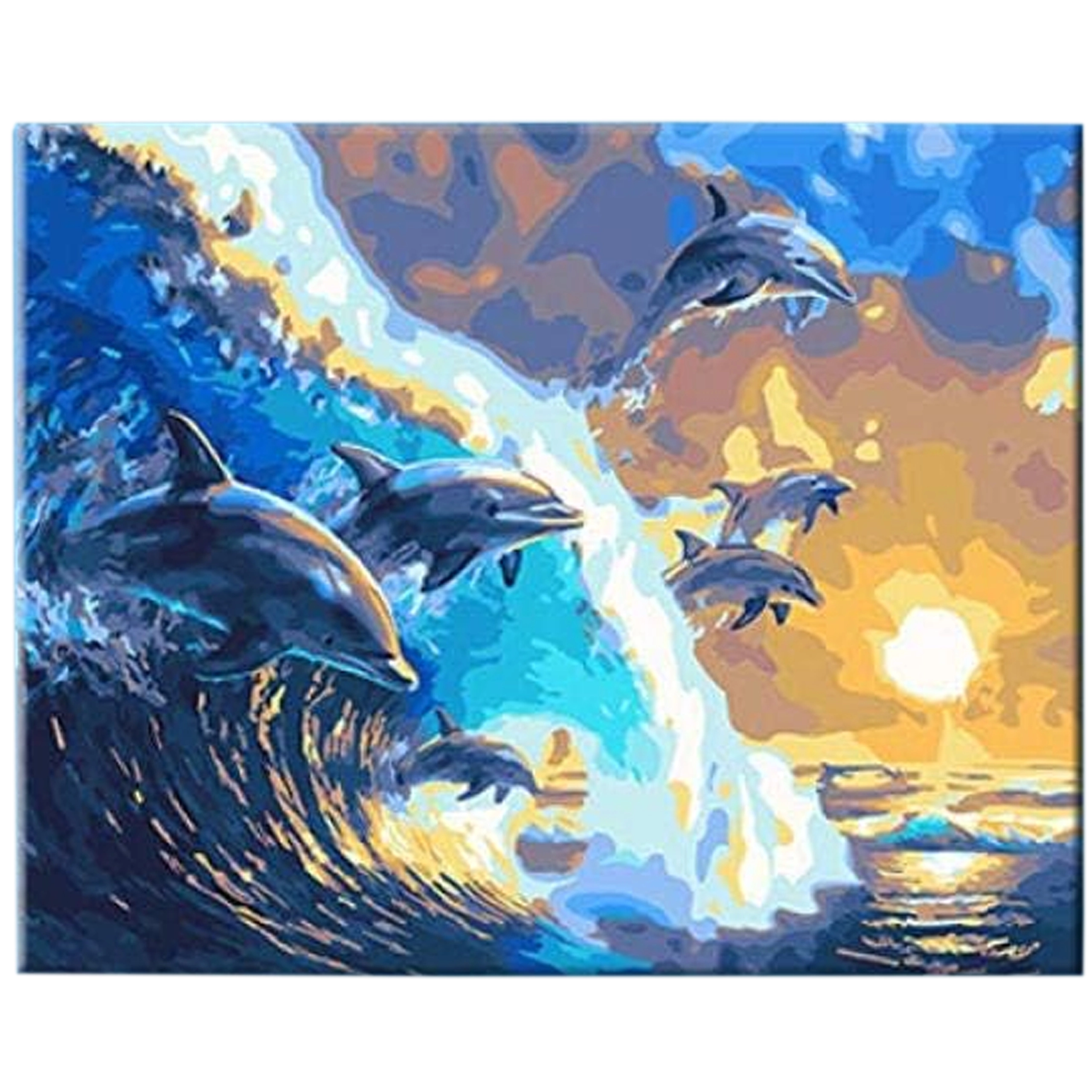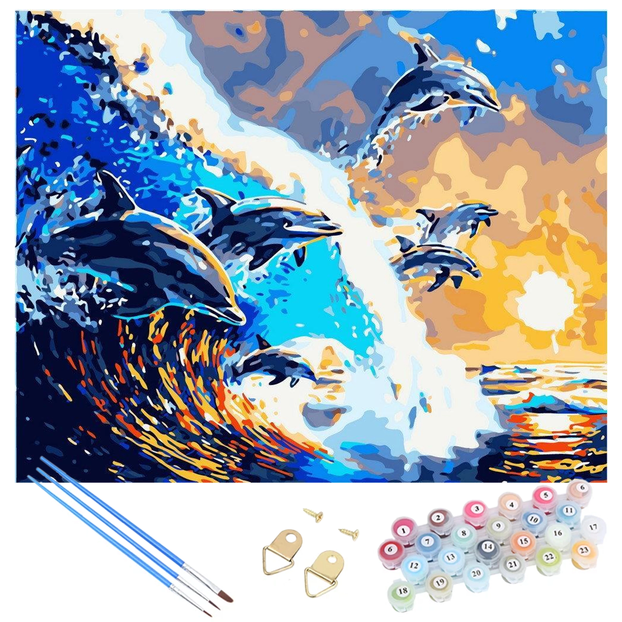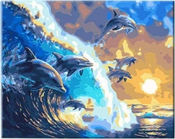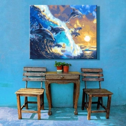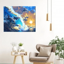 Malowanie po numerach z ramą 40 × 50 cm – delfiny