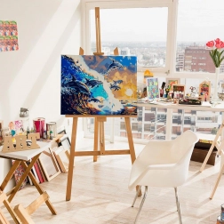 Dzięki płótnu naciągniętemu na ramie możesz malować od razu po rozpakowaniu, a gotowe dzieło od razu powiesić na ścianie. Motyw łączy nasycone niebieskie i ciepłe pomarańczowe tony, które rozświetlą Twoje wnętrze i nadadzą mu przyjemną atmosferę.