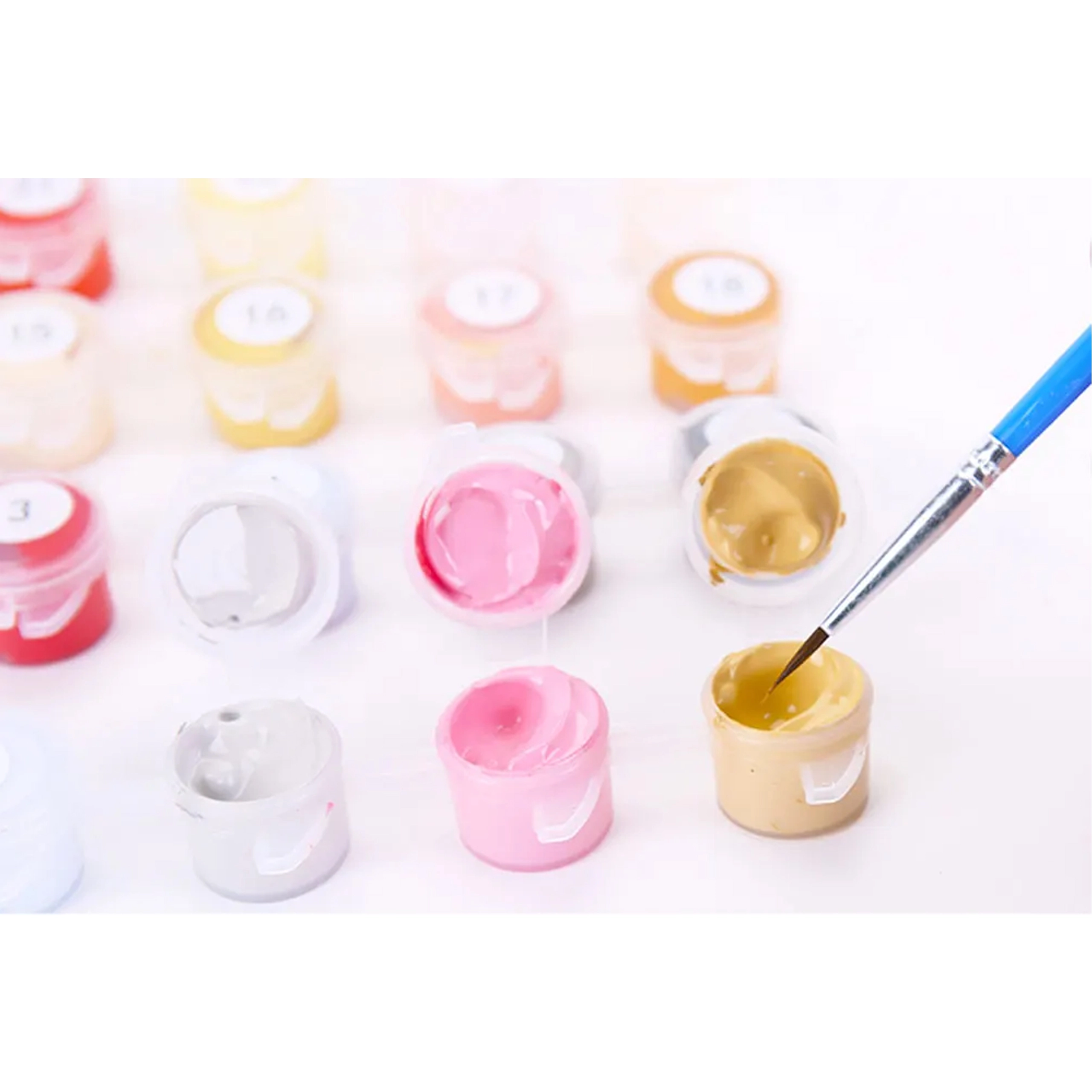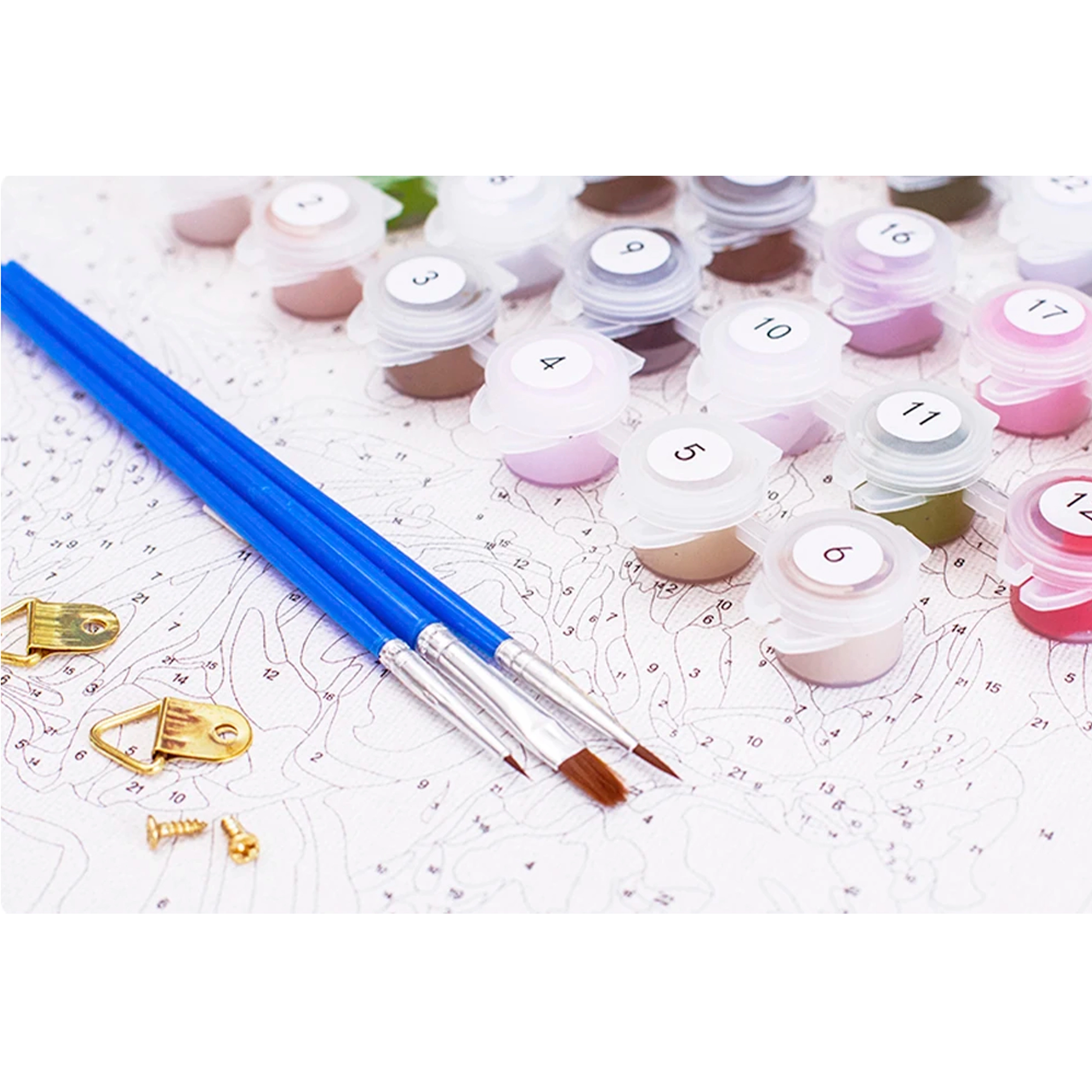 Ponumerowane płótno, farby akrylowe i pędzle – zacznij malować od razu po rozpakowaniu. Każdy numer dokładnie odpowiada kolorowi dla doskonałego efektu.