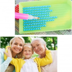 - Czysta i uporządkowana praca – segregację kryształków i precyzyjne umieszczanie ułatwia rowkowana tacka.