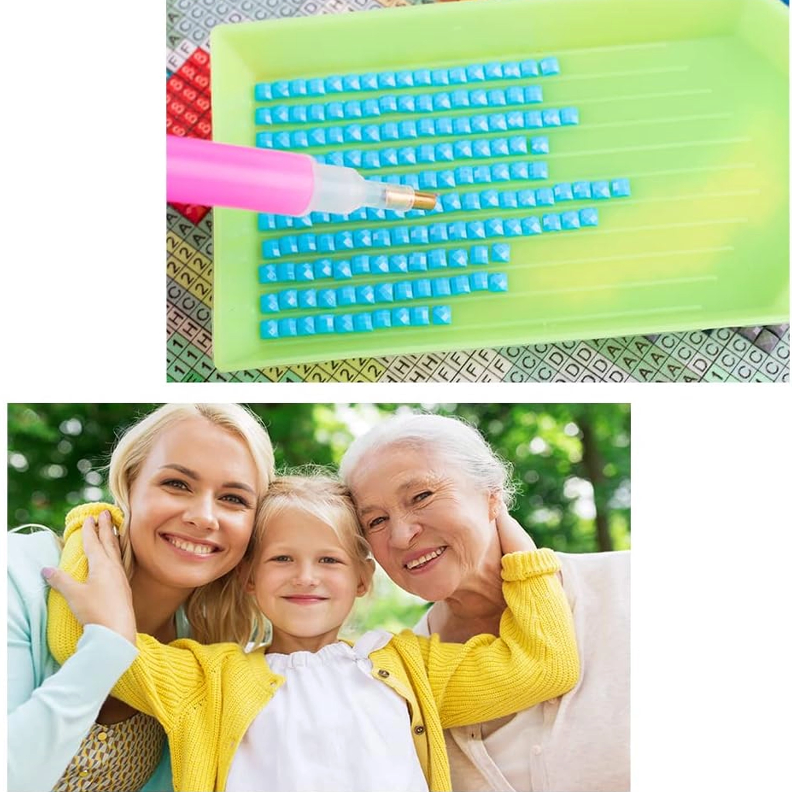 Procedura jest prosta: wsyp kryształki do rowkowanej miseczki, nabierz je za pomocą aplikatora z woskiem i według kodu przyklejaj na nadrukowane płótno. Dzięki czytelnemu oznaczeniu projekt jest idealny dla dzieci i całkowitych początkujących.