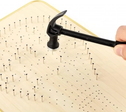 - Rama z podkładem, gwoździki, nici/sznureczki, akcesoria (drobne narzędzia i dodatki)