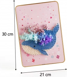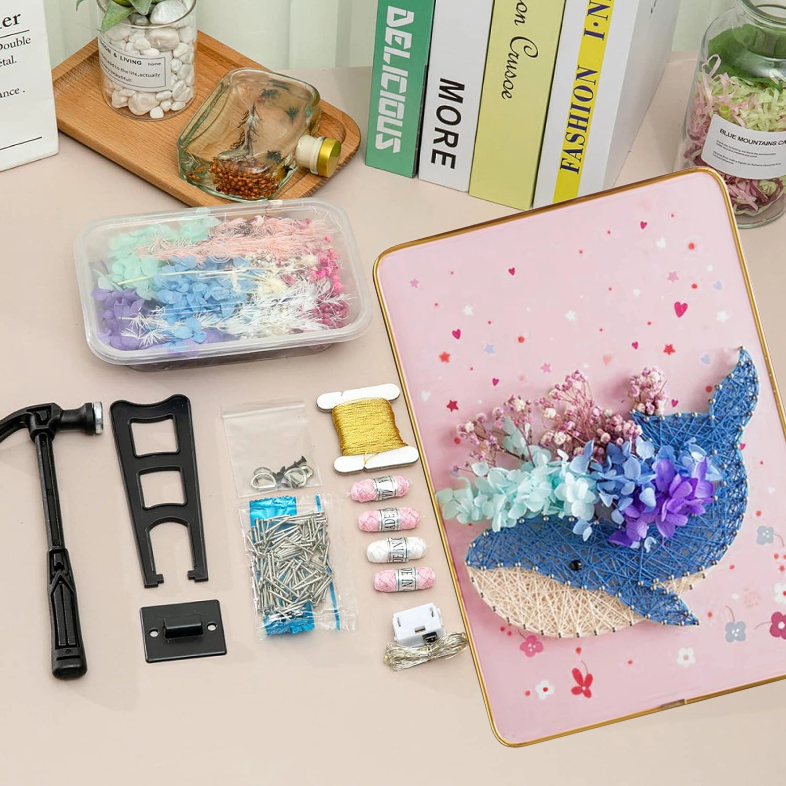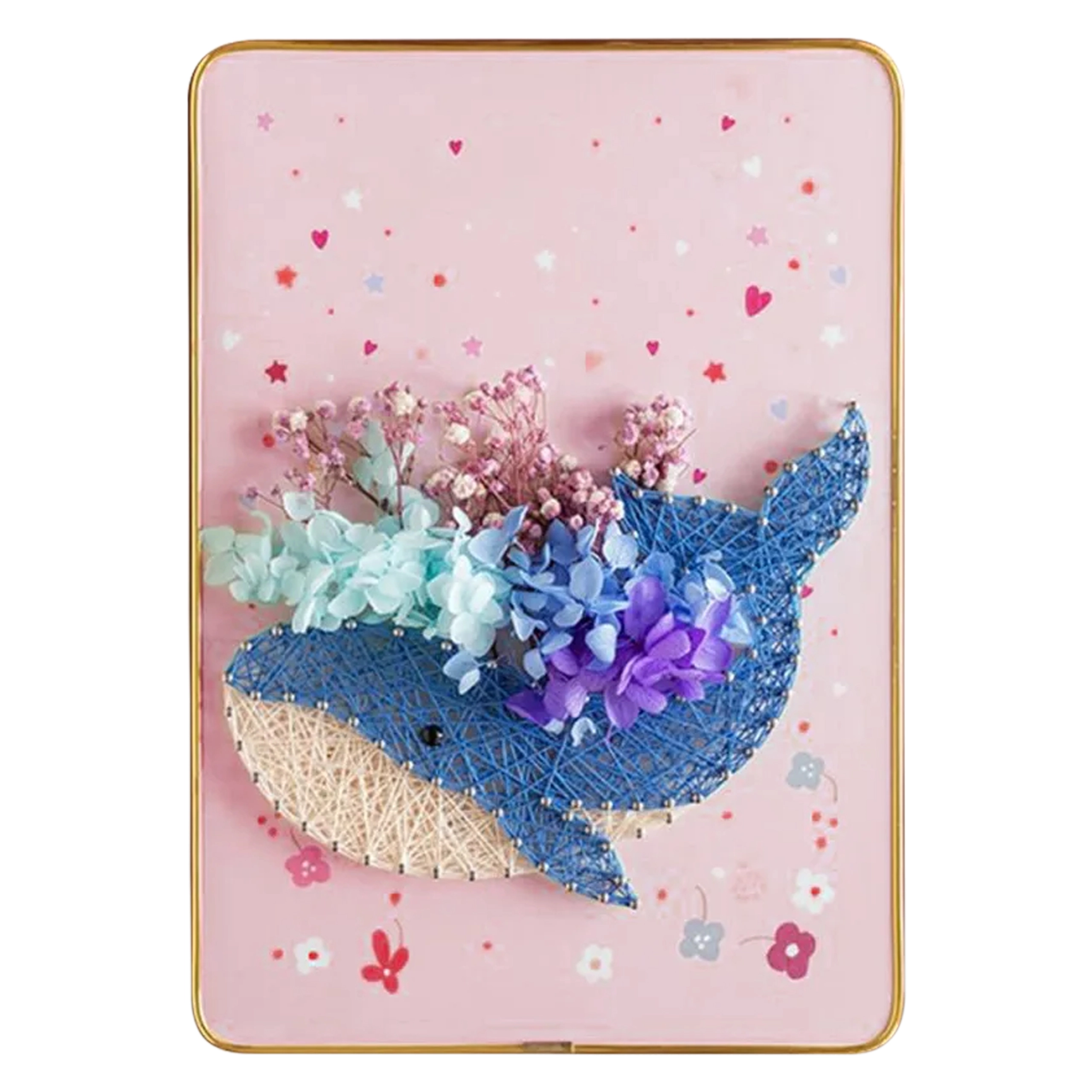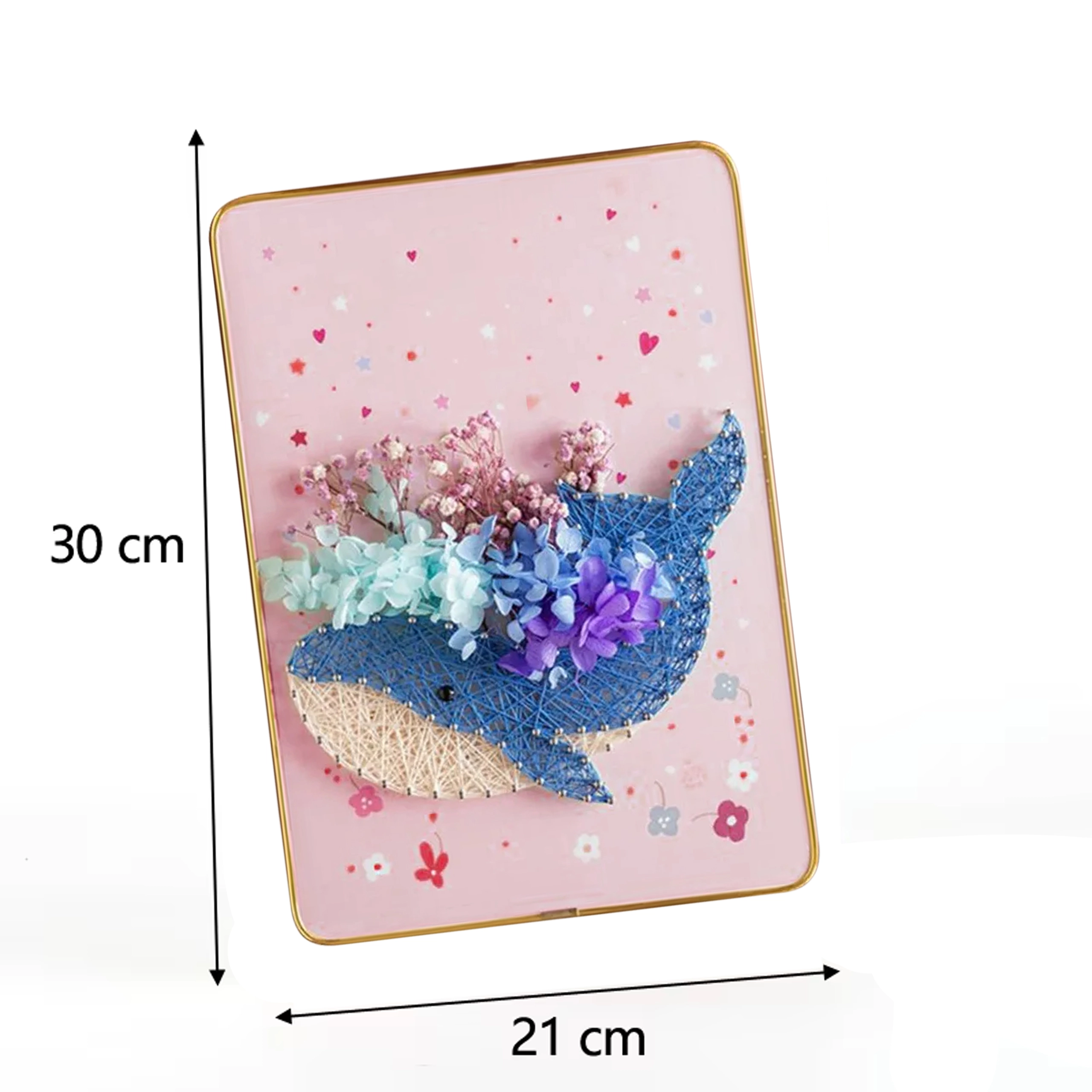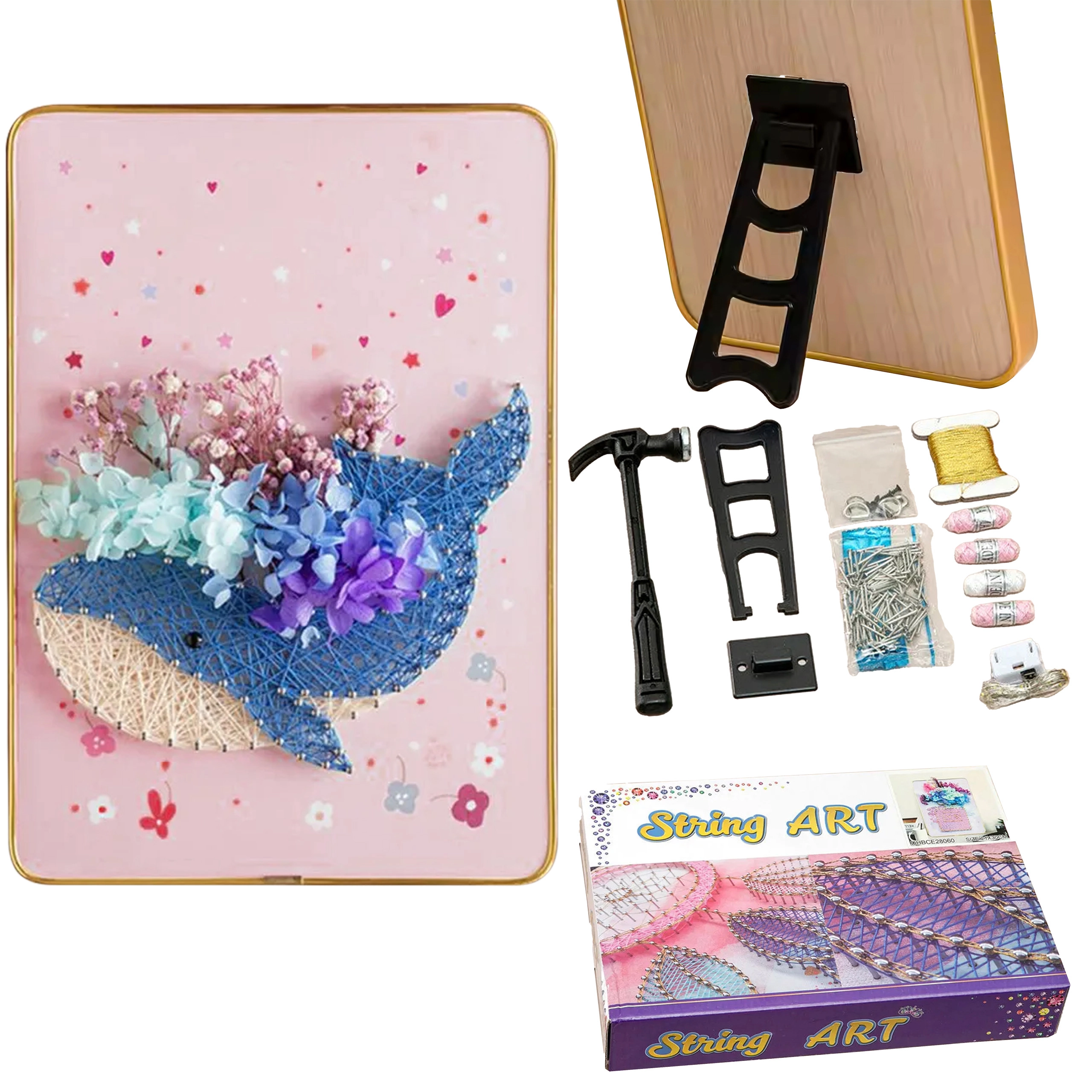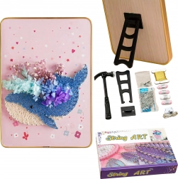 Odkryj zabawną „sztukę nici” dla dzieci i dorosłych. Ten kreatywny zestaw string art zawiera wszystko, czego potrzeba do stworzenia dekoracyjnego obrazu w ramie 21 × 30 cm z motywem delfina. Dzięki zintegrowanym światełkom LED Twoje dzieło zyska magiczną atmosferę. Świetny prezent, który rozwija kreatywność, wyobraźnię i motorykę małą.