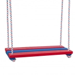 Ta drewniana huśtawka w wesołych barwach dostarczy wiele radości dzieciom i dorosłym. Dzięki solidnemu drewnianemu siedzisku jest wygodna, stabilna i bezpieczna do codziennego bujania w domu i w ogrodzie.