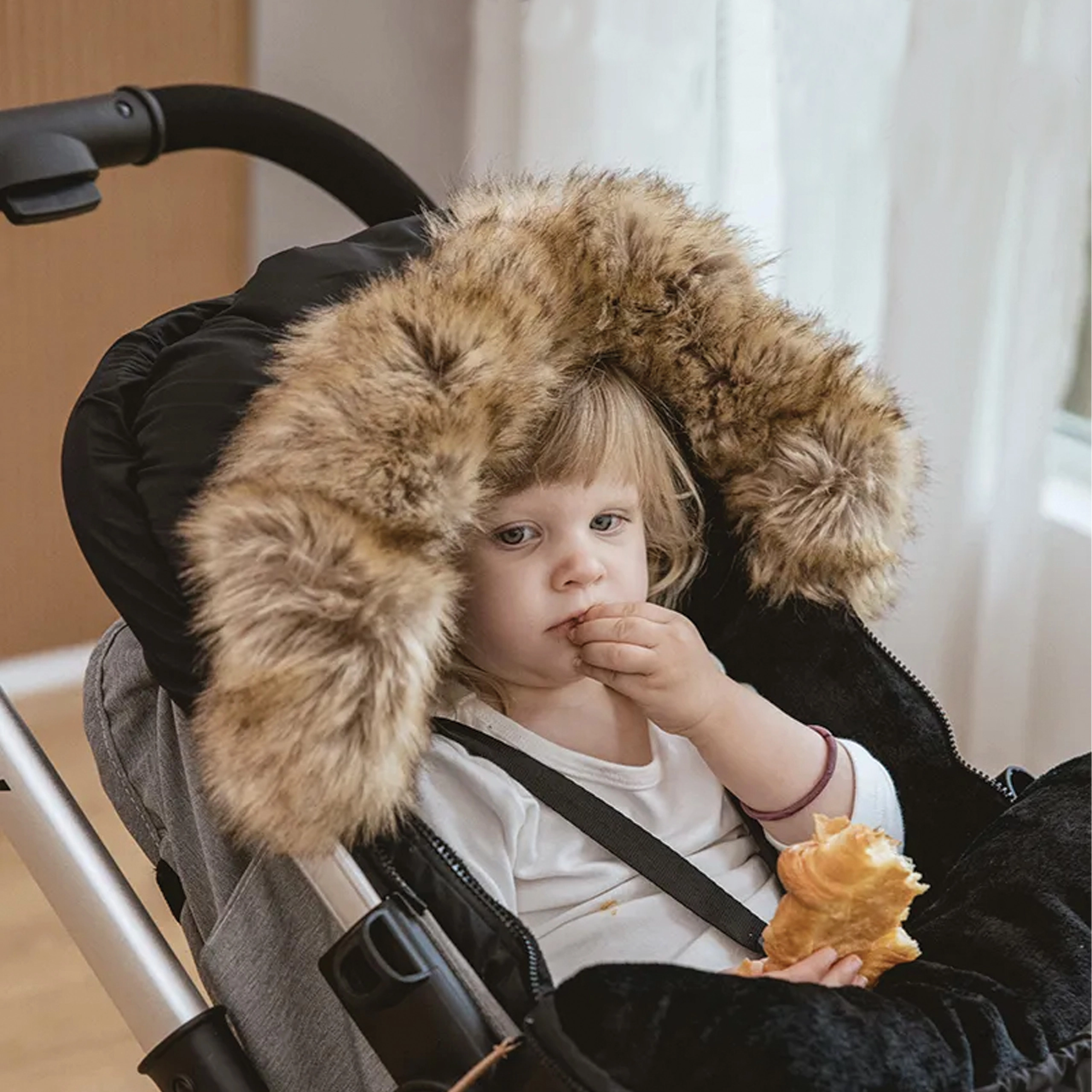 Grube ocieplenie, miękka podszewka i kaptur z futerkiem utrzymują dziecko w cieple podczas zimowych spacerów. Idealny do spania i siedzenia.