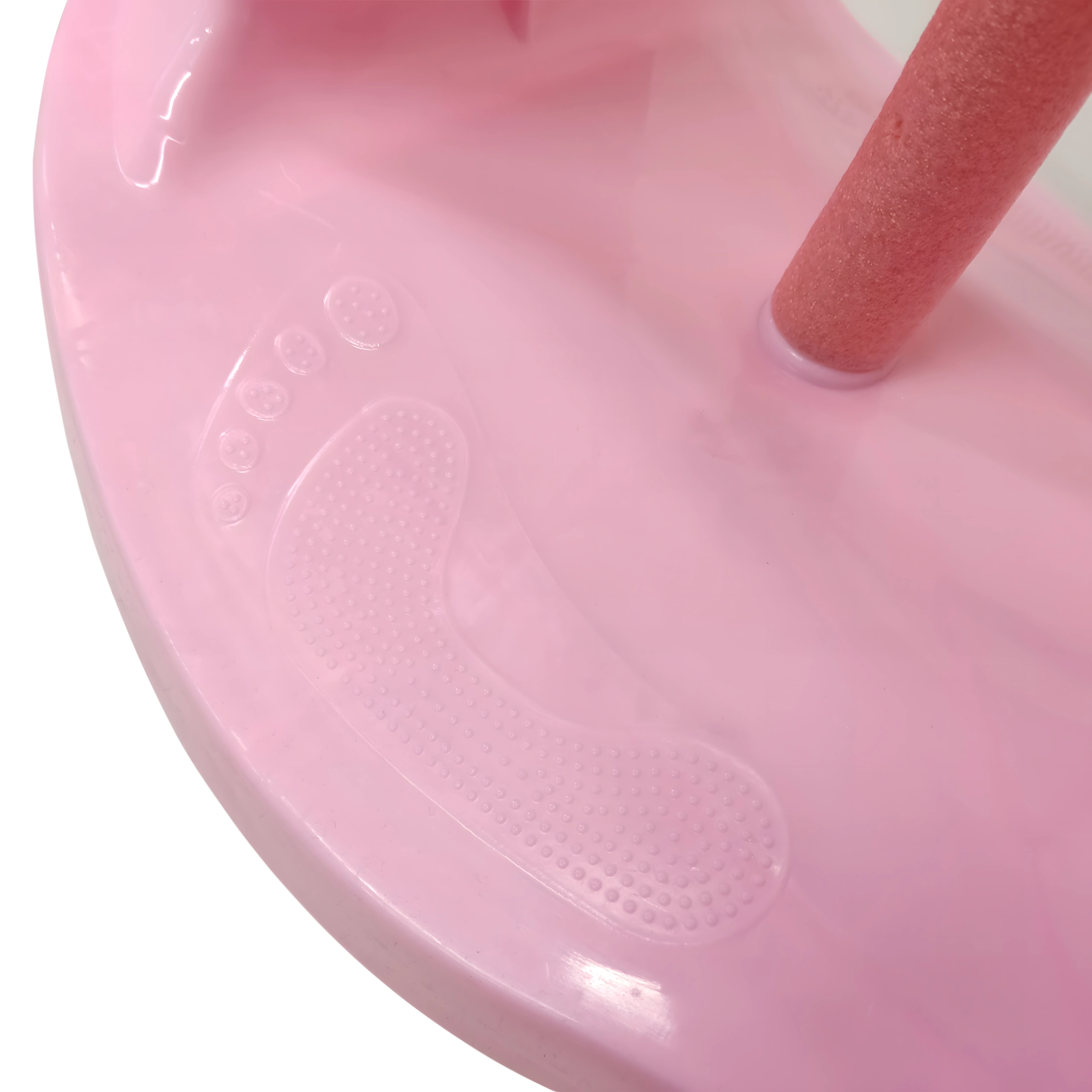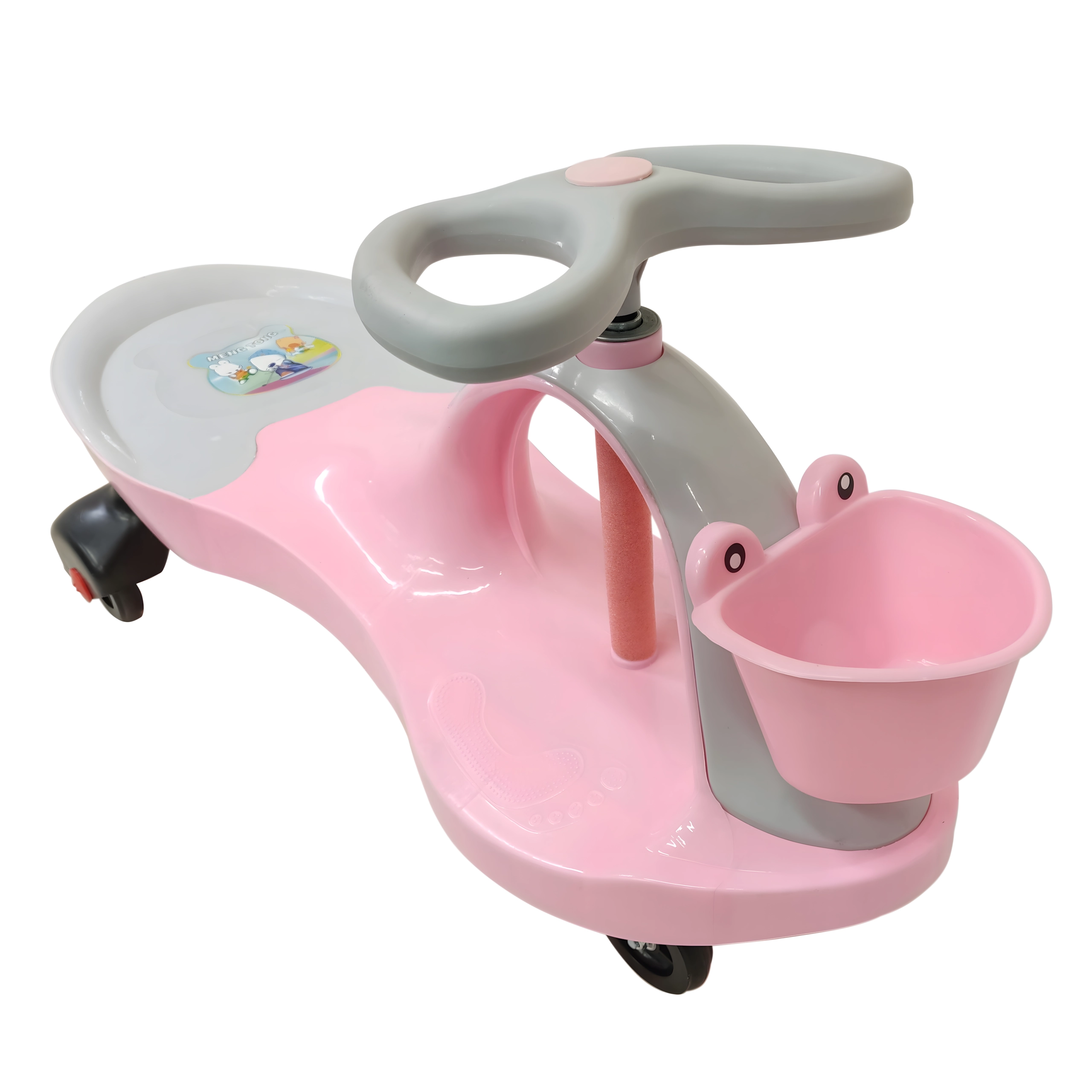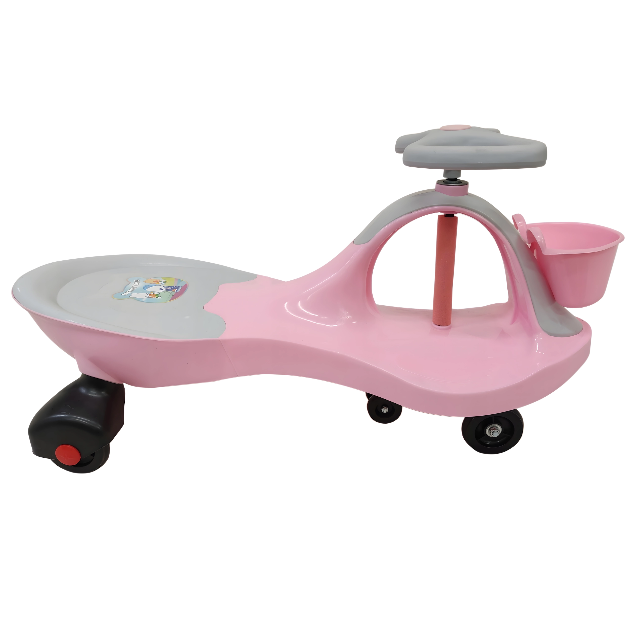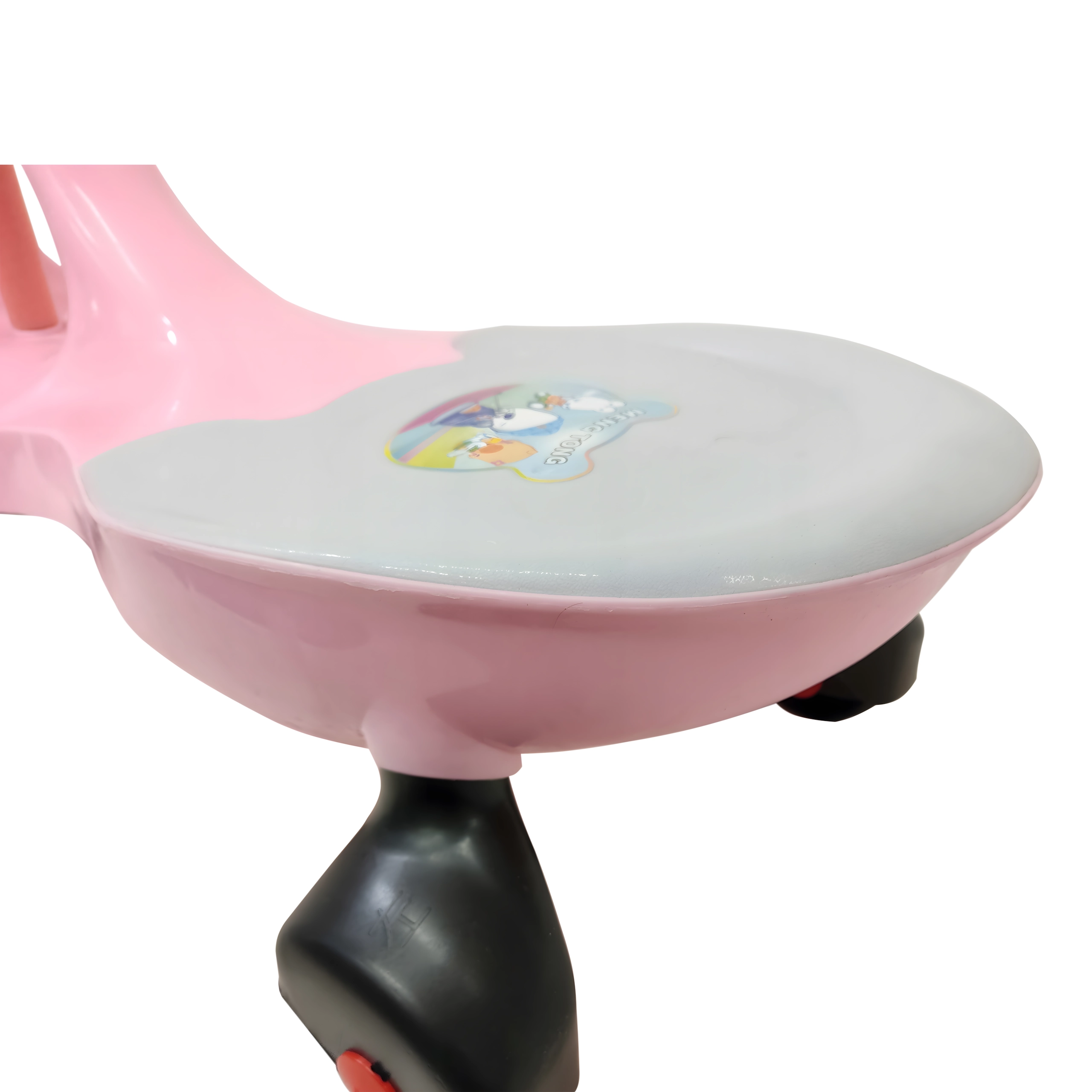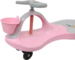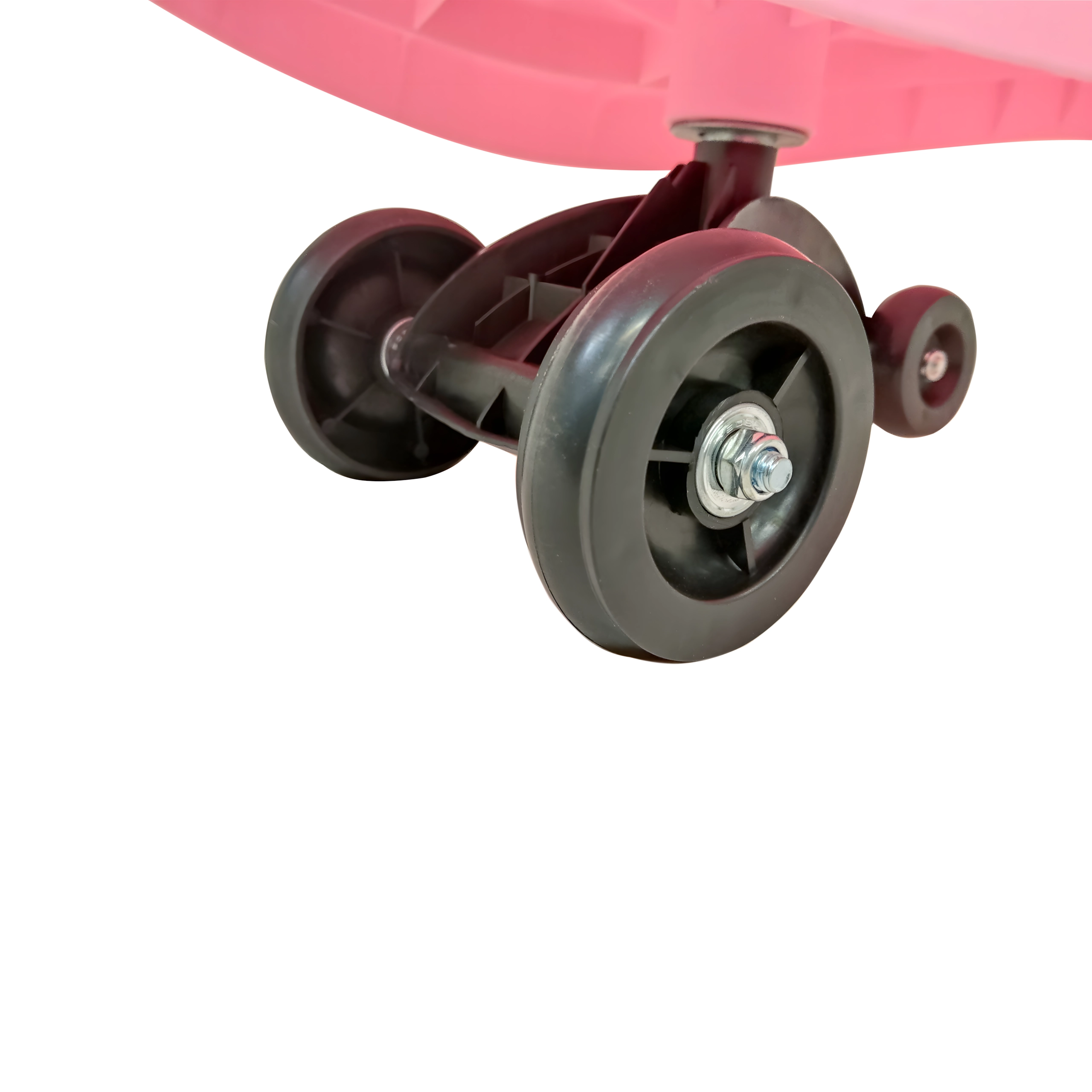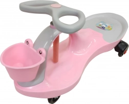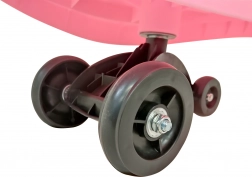 Różowy balansowy jeździk swing car to innowacyjny pojazd dla dzieci od ok. 2 lat, który porusza się dzięki naprzemiennemu skrętnemu ruchowi kierownicą. Dziecko nie potrzebuje odpychania nogami – energia ruchu przenosi się na koła i jeździk płynnie rusza. Wytrzymałe plastikowe nadwozie, nisko położony środek ciężkości oraz szeroki rozstaw tylnych kół zapewniają bezpieczeństwo i stabilność podczas jazdy.