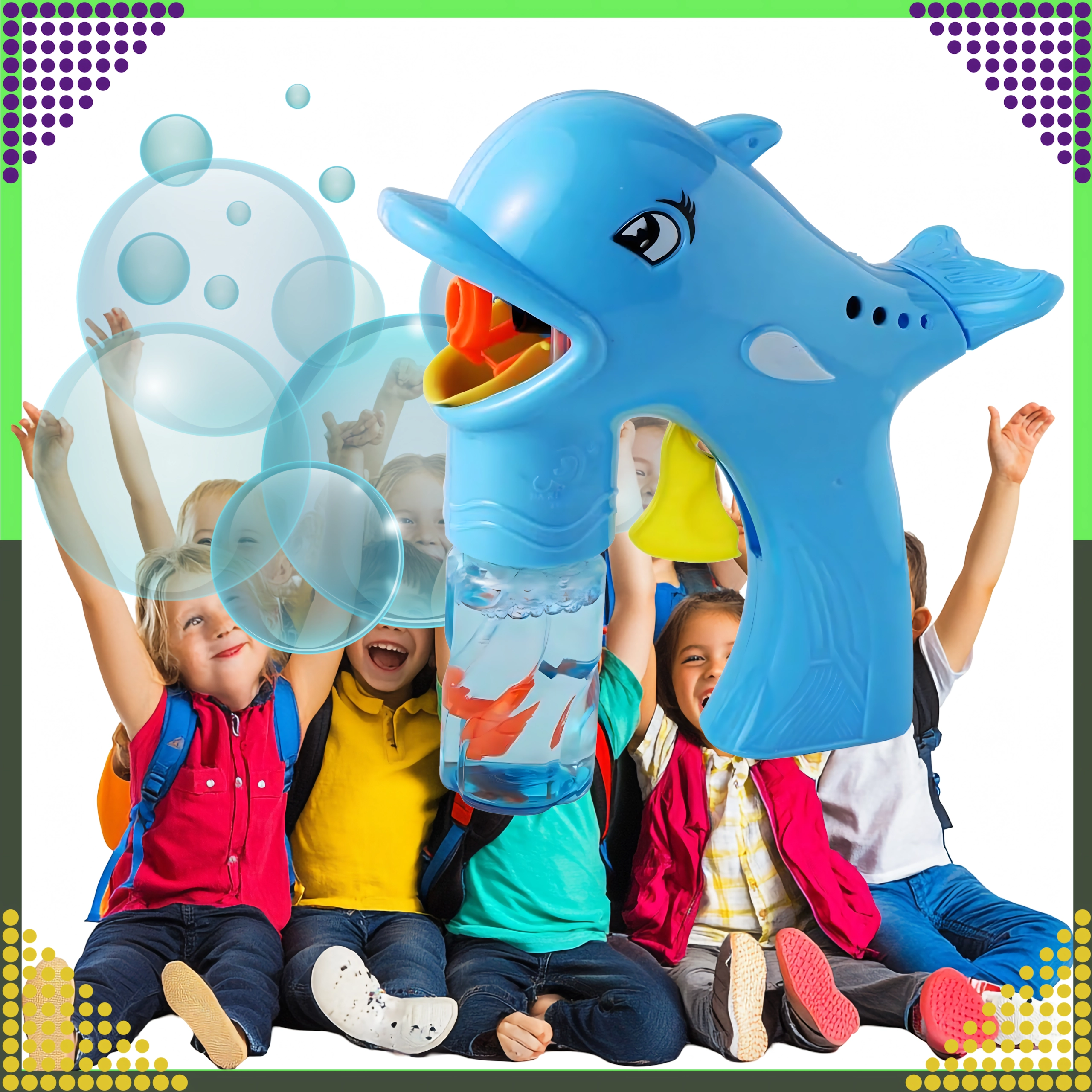 Zabawny pistolet do baniek mydlanych w kształcie delfina tworzy setki połyskujących baniek po jednym naciśnięciu spustu. Dzięki praktycznemu zbiorniczkowi z roztworem i ergonomicznemu uchwytowi zabawka jest idealna dla dzieci od 3 lat – do ogrodu i do domu. W zestawie znajdują się 2 buteleczki roztworu, łatwa obsługa oraz bezpieczny skład przyjazny dla dziecięcej skóry.
