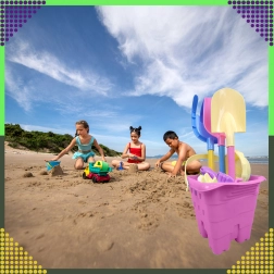 Zestaw plażowych zabawek (wiaderko, foremki, łopatka itp.)