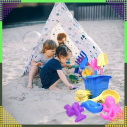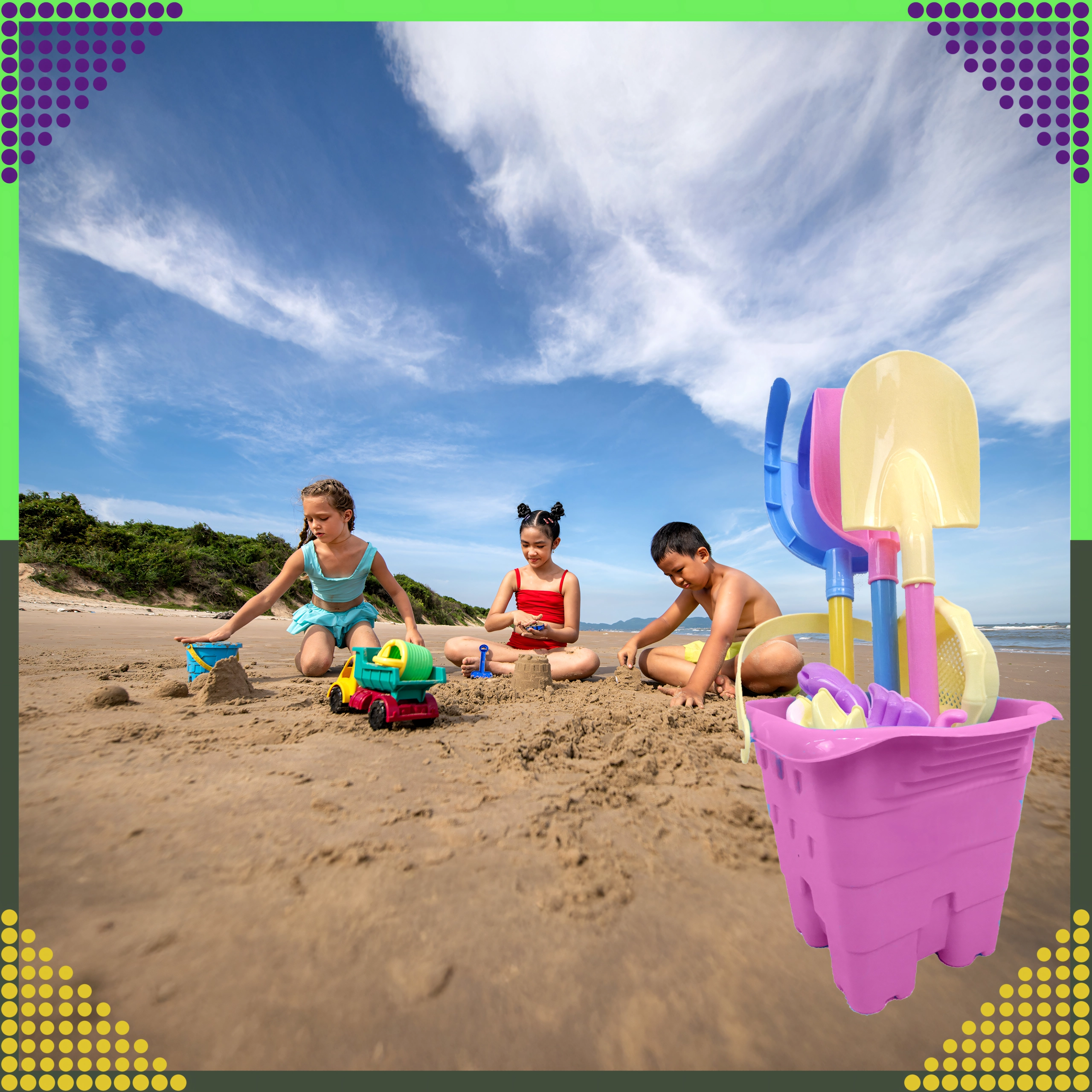 Zestaw świetnie sprawdzi się na plaży, w ogrodzie i nad wodą. Twórzcie piaskowe zamki i rozbudzajcie dziecięcą wyobraźnię każdego dnia.