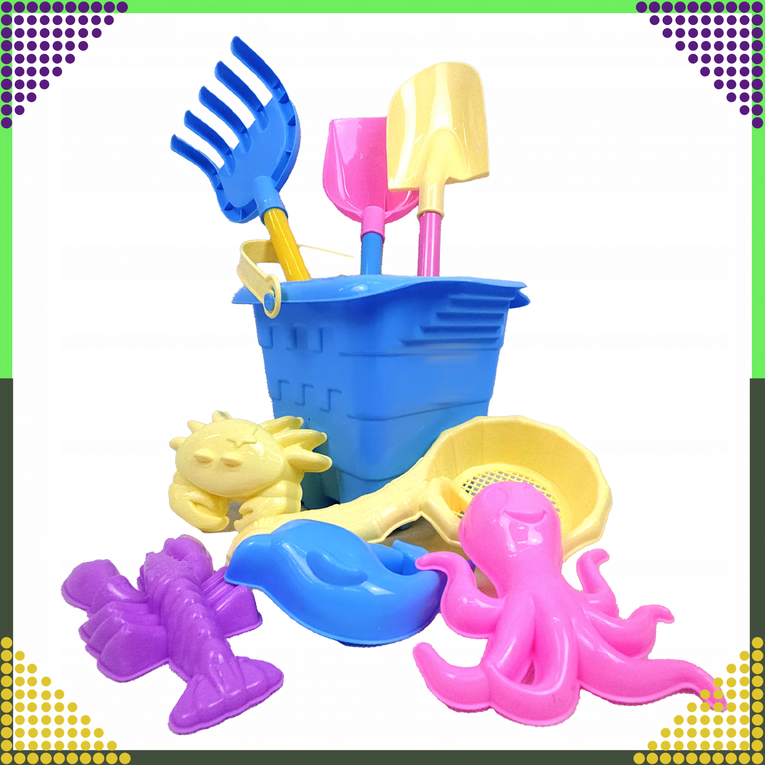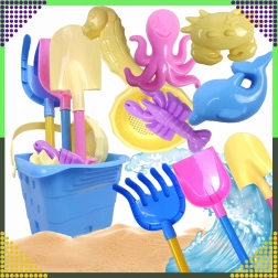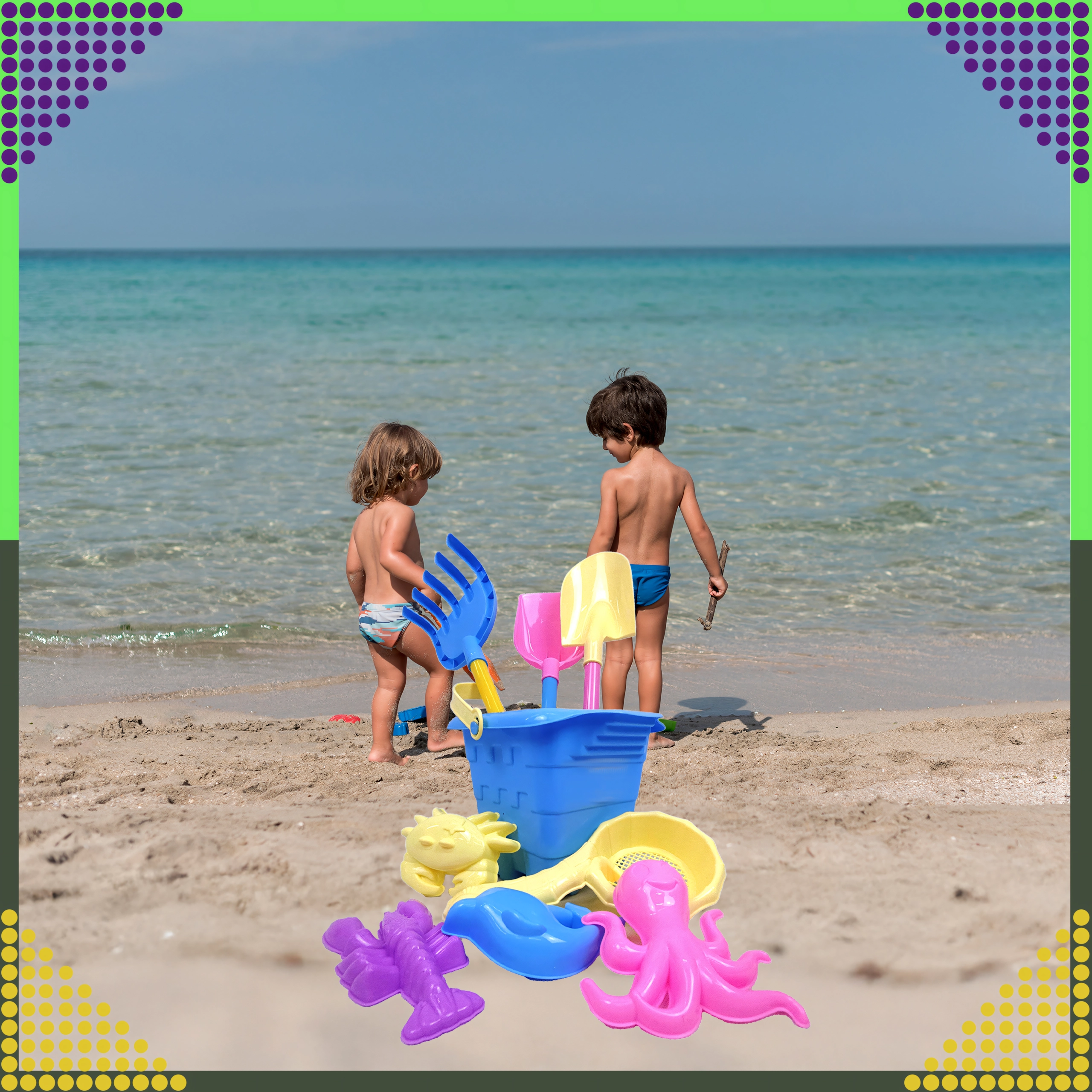 Zestaw plażowych zabawek z wiaderkiem i foremkami, 9 szt.