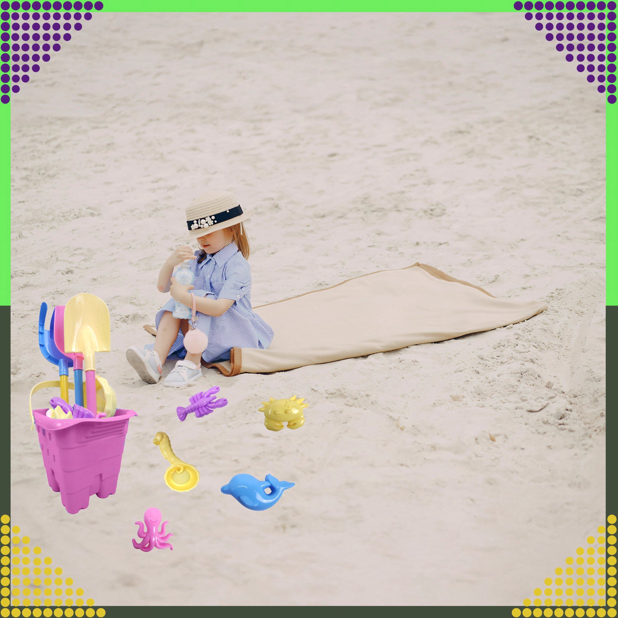 • Zestaw 9‑elementowy – wszystko, czego dzieci potrzebują do kreatywnych budowli z piasku.