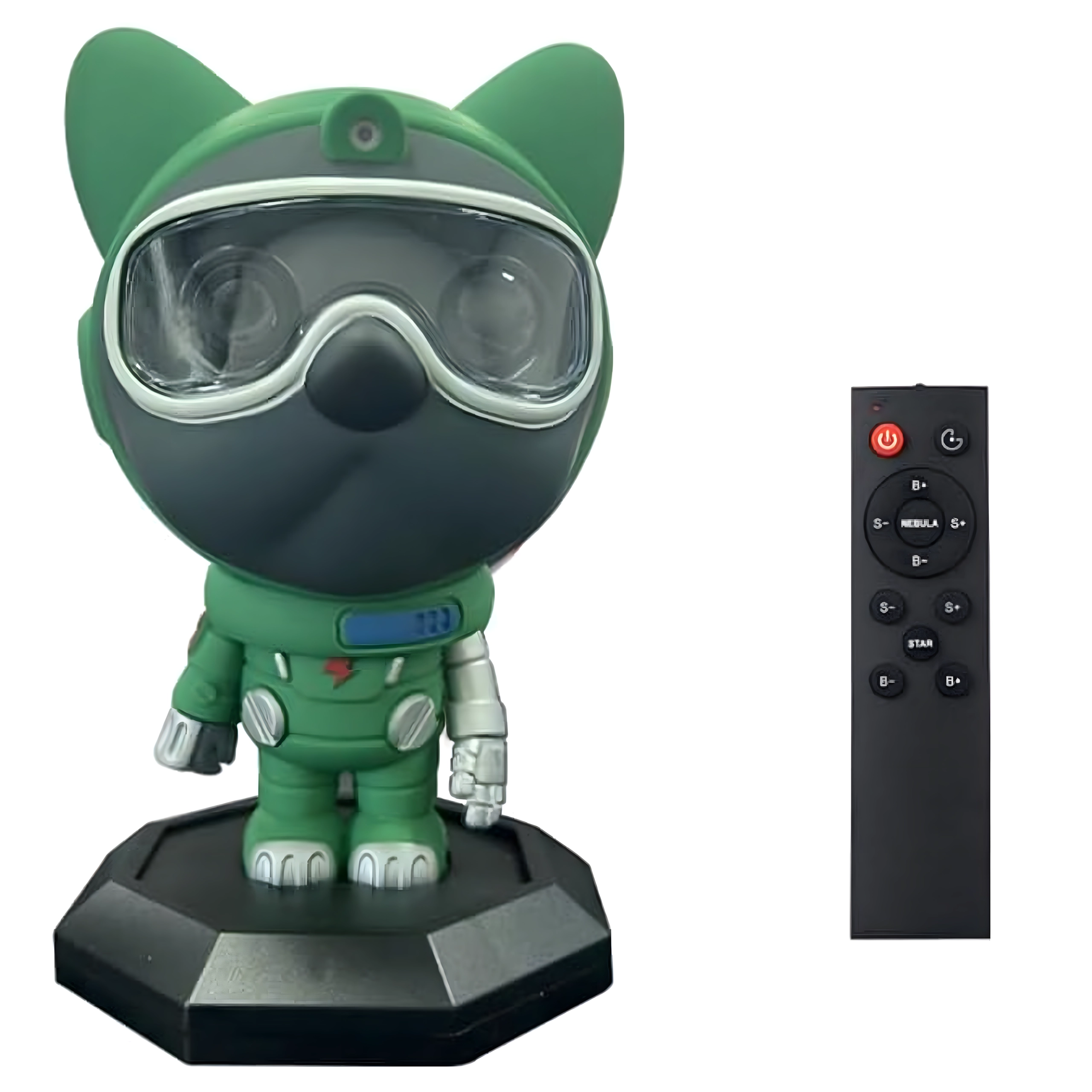 Uroczy projektor gwiazd w kształcie psa‑astronauty zamieni dziecięcy pokój w małe planetarium. Oferuje obrotową projekcję 360°, kolorowe mgławice, realistyczne gwiazdy oraz wygodne zdalne sterowanie z timerem i regulacją jasności – idealny jako dekoracja, pomoc w relaksie i lampka nocna.