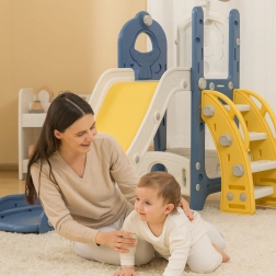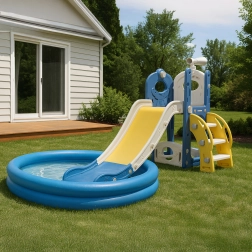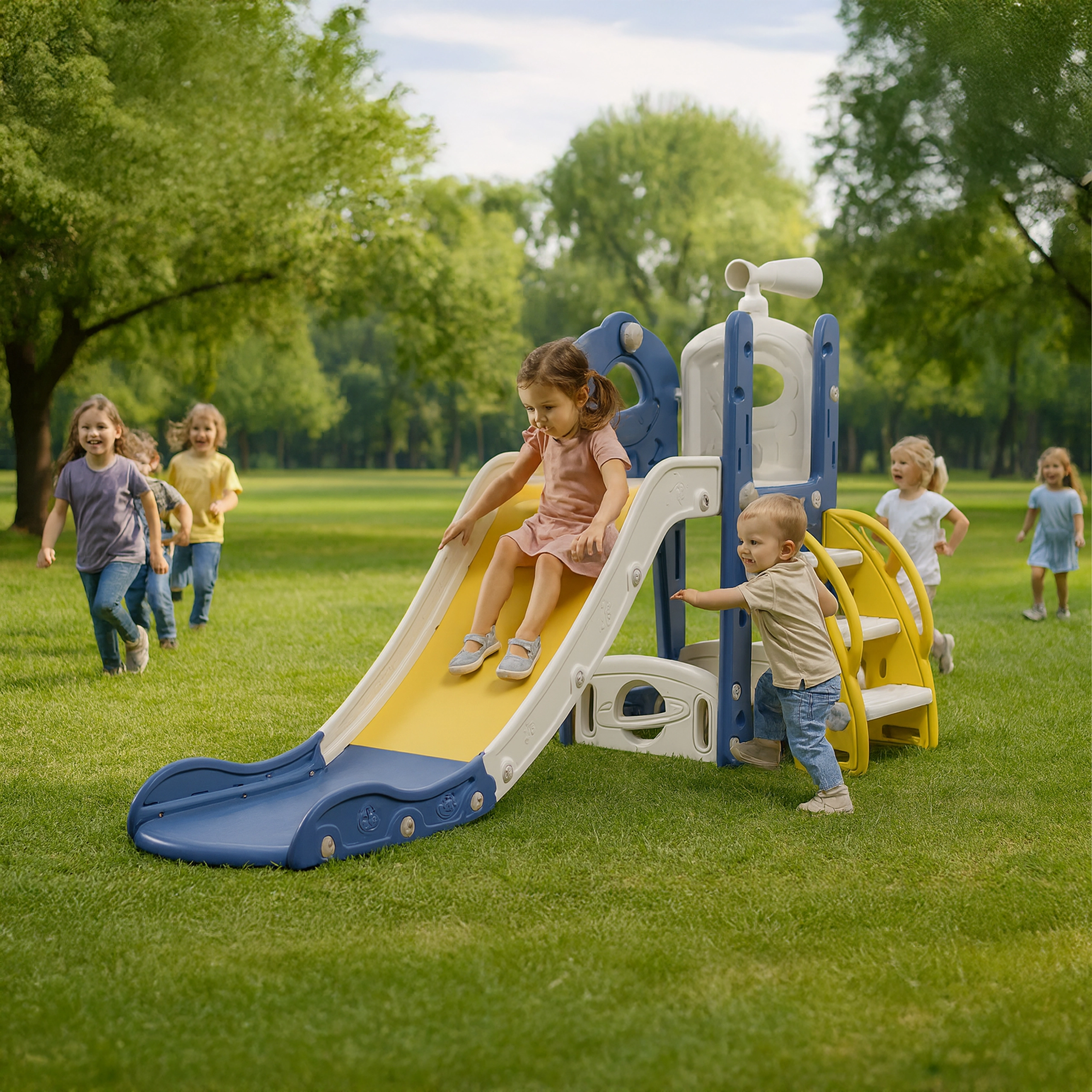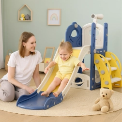 Ta uniwersalna zjeżdżalnia jest idealna do pokoju dziecięcego, sali zabaw i ogrodu. Łączy bezpieczną zabawę z rozwojem umiejętności ruchowych – dzieci skorzystają ze wspinania po szerokich stopniach, widoku z platformy oraz płynnego zjazdu po długiej, gładkiej powierzchni. Trwały plastik z zaokrąglonymi krawędziami i antypoślizgowymi stopkami zapewnia stabilność i bezpieczeństwo.