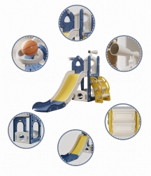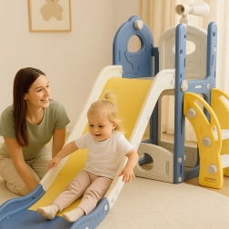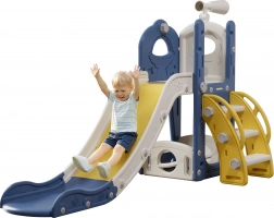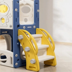 W zestawie znajdują się zabawne akcesoria – kosz do koszykówki na pierwsze trafienia oraz teleskop dla małych odkrywców. Zjeżdżalnia jest łatwa w utrzymaniu, nadaje się do codziennej zabawy, a dzięki kompaktowym wymiarom umieścisz ją w salonie, pokoju dziecięcym i na tarasie. Świetnie sprawdzi się także przy suchym baseniku z piłeczkami.