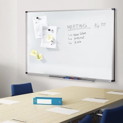 Ta uniwersalna magnetyczna tablica suchościeralna zapewnia przejrzystą wizualizację zadań, planów i pomysłów. Dzięki wysokiej jakości powierzchni pisze się po niej gładko, a teksty są wyraźnie czytelne nawet z większej odległości. Warstwa magnetyczna pozwala przymocować dokumenty, rysunki czy notatki za pomocą magnesów.