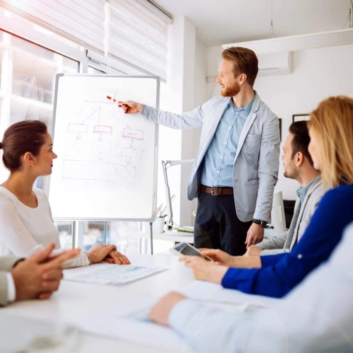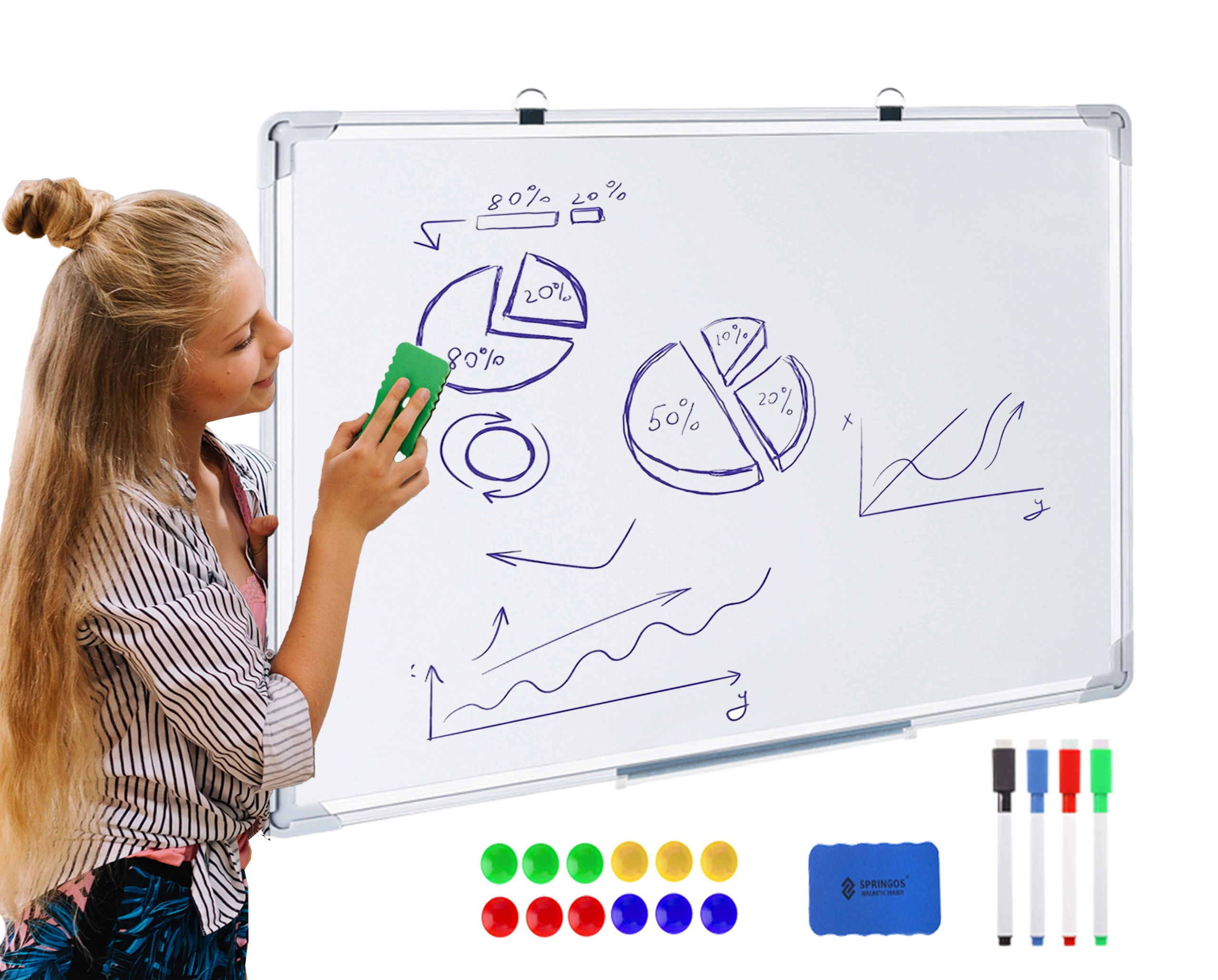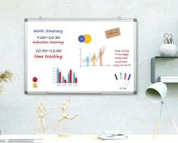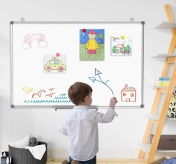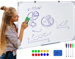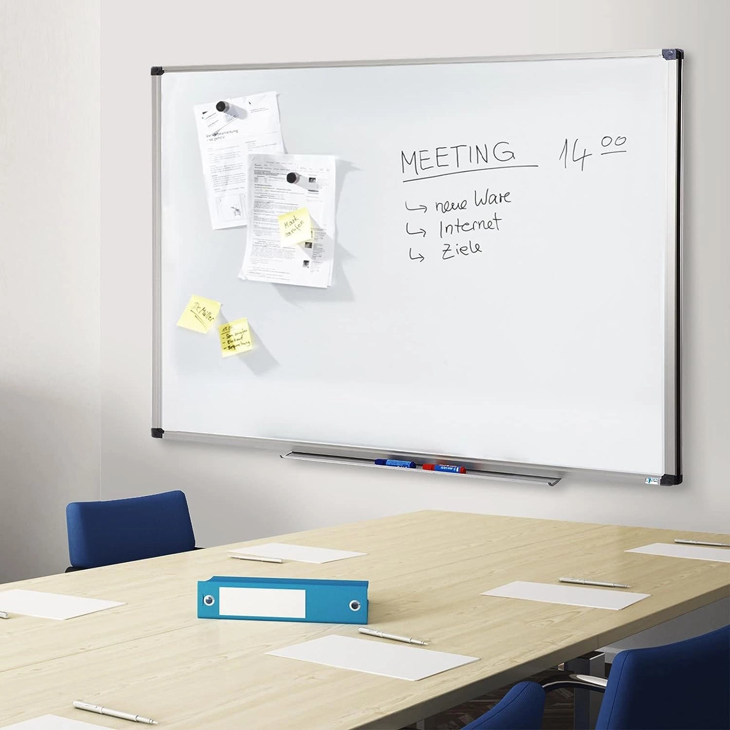 Kompaktowa magnetyczna tablica 60 × 40 cm z aluminiową ramą jest idealna do biura, szkoły i domu. Oferuje gładką, suchościeralną powierzchnię do czystego pisania, funkcję magnetyczną do przypinania notatek, półkę na markery oraz łatwy montaż na ścianie.