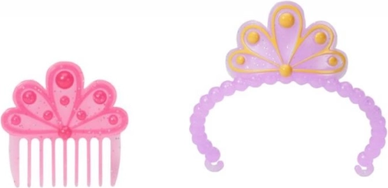 Długie różowe włosy lalki można łatwo pielęgnować i stylizować przy użyciu dołączonego grzebienia.
