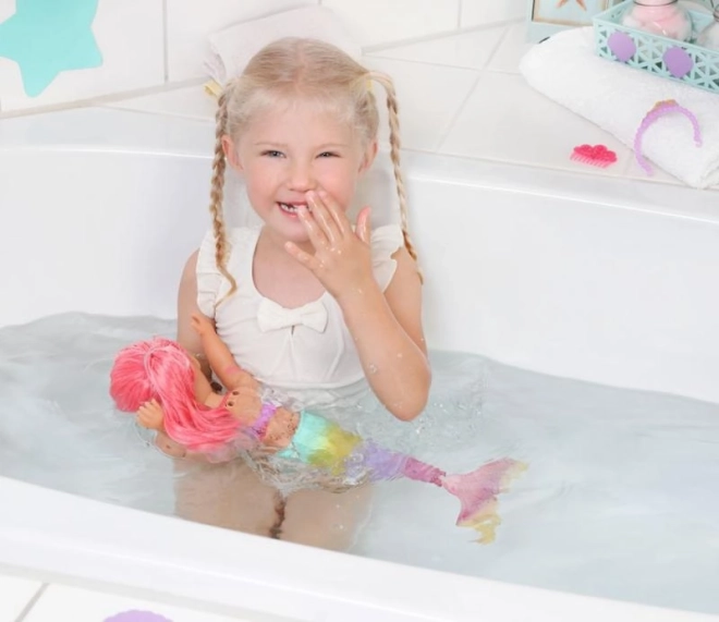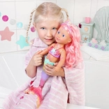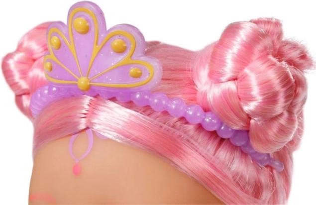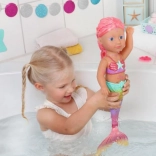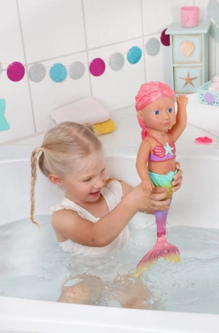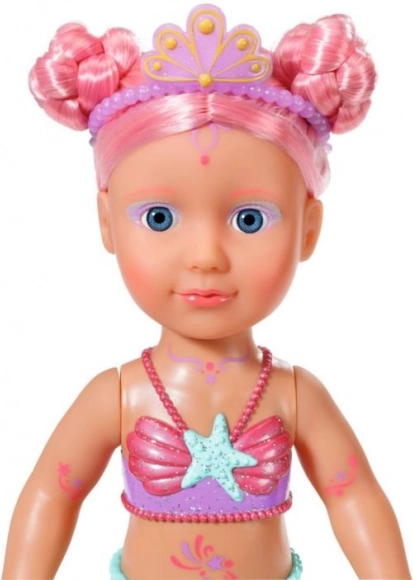 BABY born Little syrenka księżniczka to nieodparta lalka o długich różowych włosach, ozdobionych fioletową opaską. Ogon lalki jest pięknie kolorowy, błyszczący i porusza się w kontakcie z wodą, tworząc magiczną atmosferę. Ma kostium kąpielowy z muszelkowym wzorem, który doskonale współgra z ogonem.