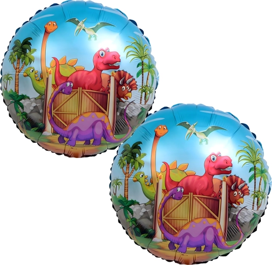 Ten kolorowy zestaw balonów z motywem dinozaurów idealnie sprawdzi się do stworzenia radosnej atmosfery na dziecięcej imprezie urodzinowej. Połączenie dużego dinozaura, balonów z nadrukiem i czerwonych gwiazdek nada dekoracji wyrazisty efekt i ucieszy małych miłośników prehistorii.