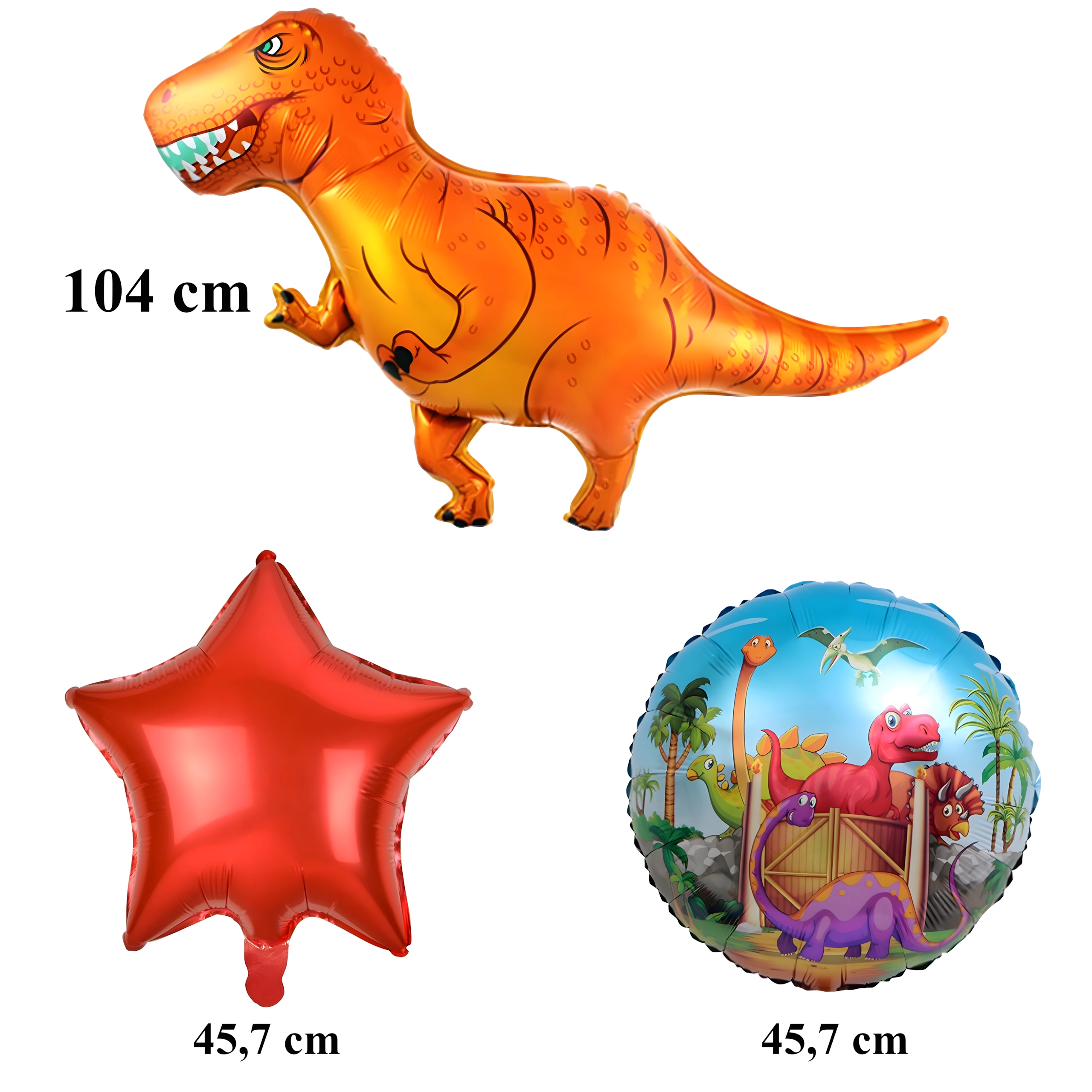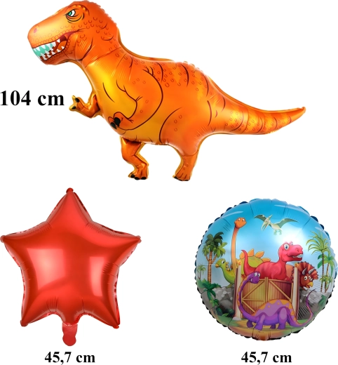 - 1× balon dinozaur, 2× balon z nadrukiem, 2× czerwona gwiazda
