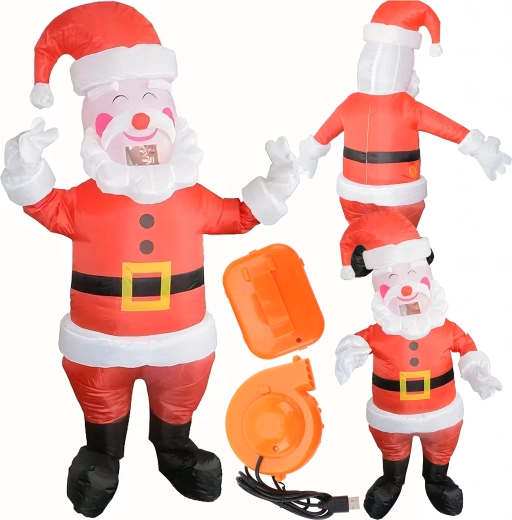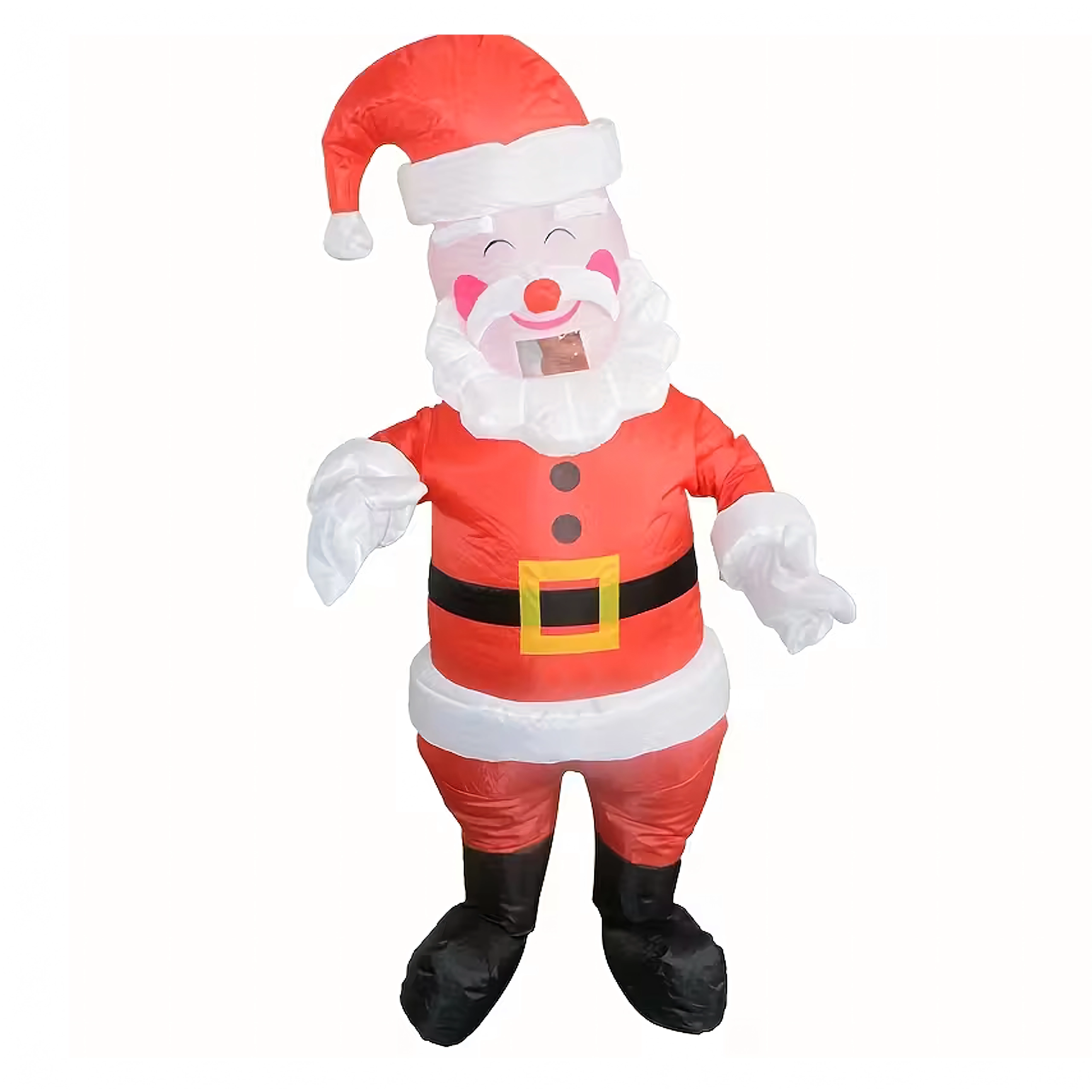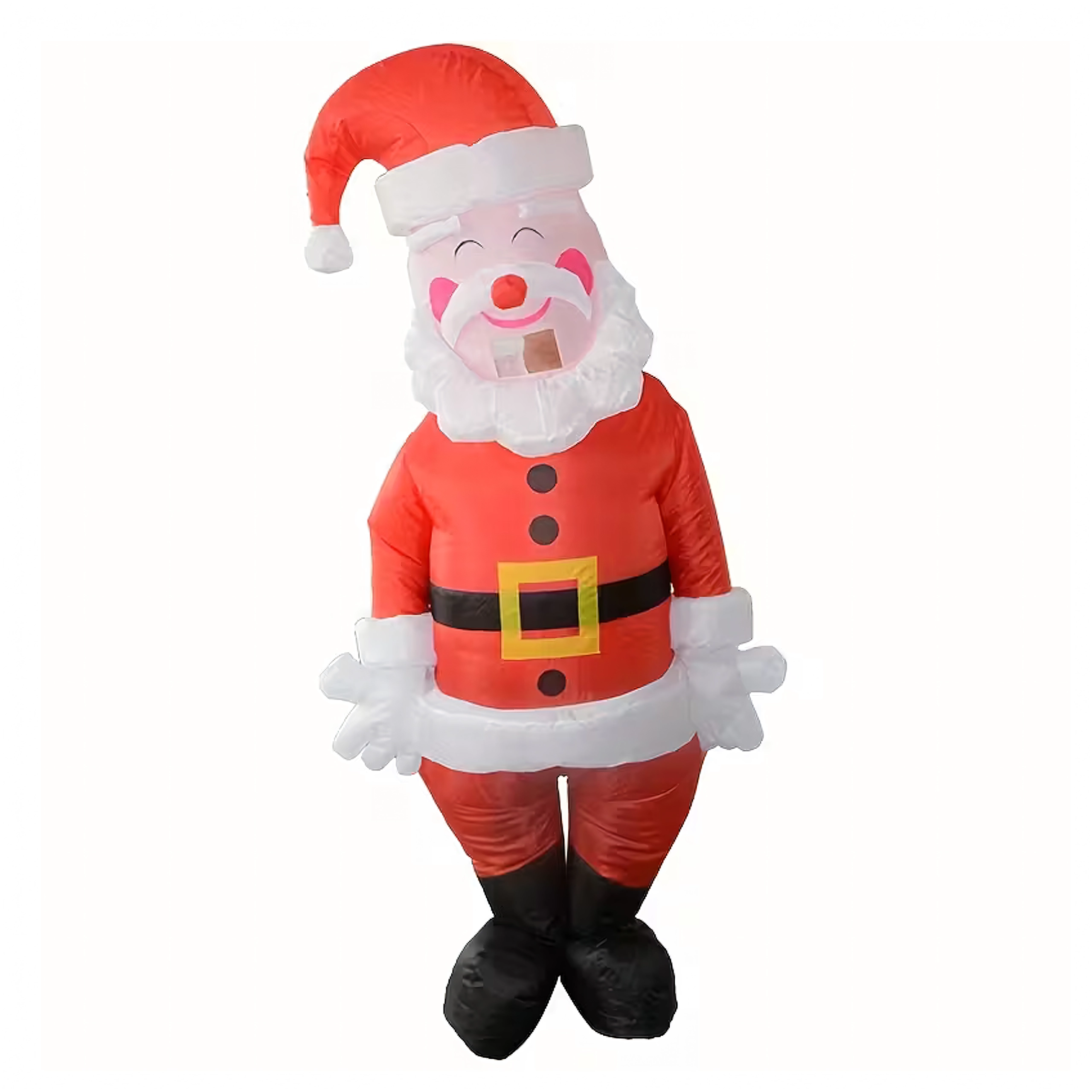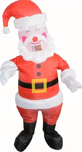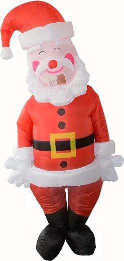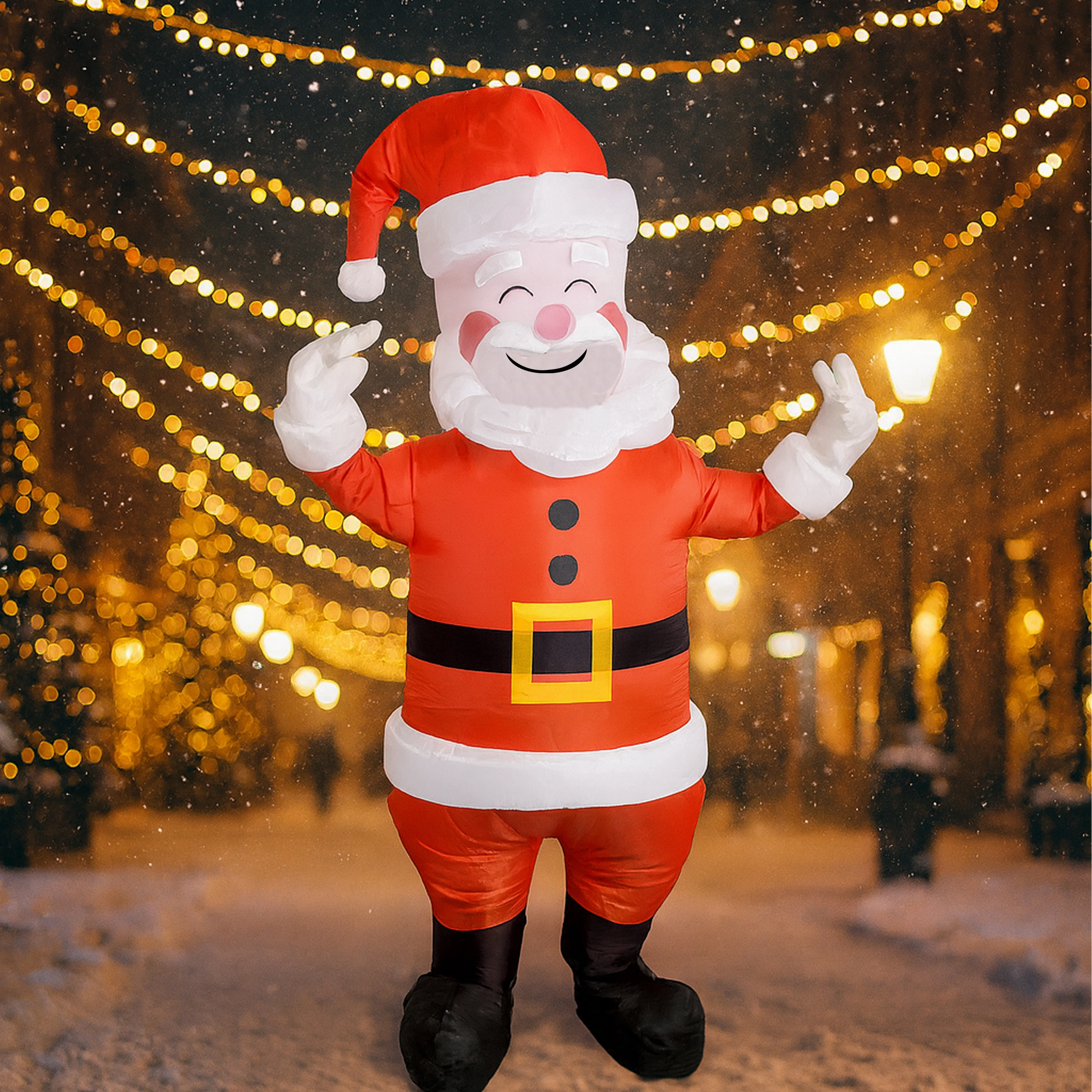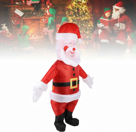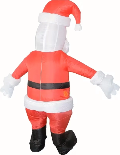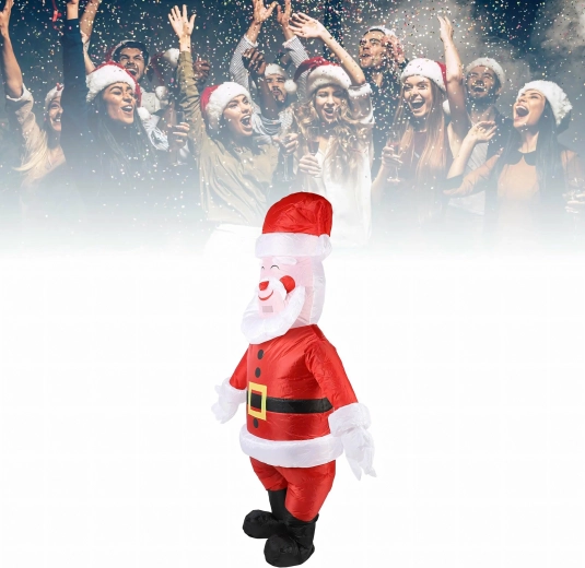 Zabawny i łatwy w użyciu nadmuchiwany kostium Mikołaja dla dorosłych (wzrost ok. 150–190 cm) jest idealny na świąteczne imprezy, eventy i domową zabawę. Lekki i wygodny materiał szybko wypełnia się powietrzem dzięki dołączonej turbinie, więc w kilka chwil stworzysz niezapomnianą, świąteczną atmosferę.