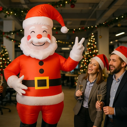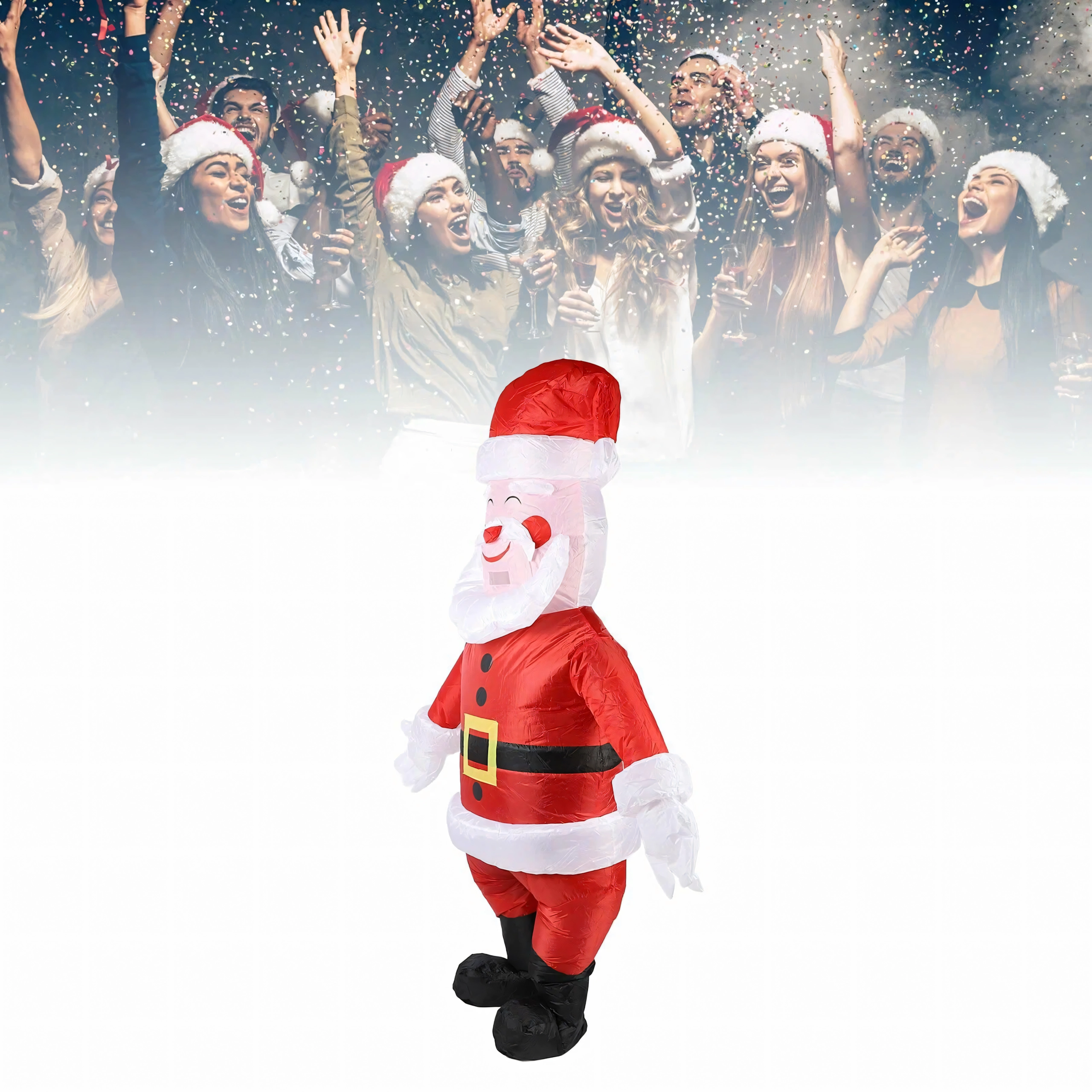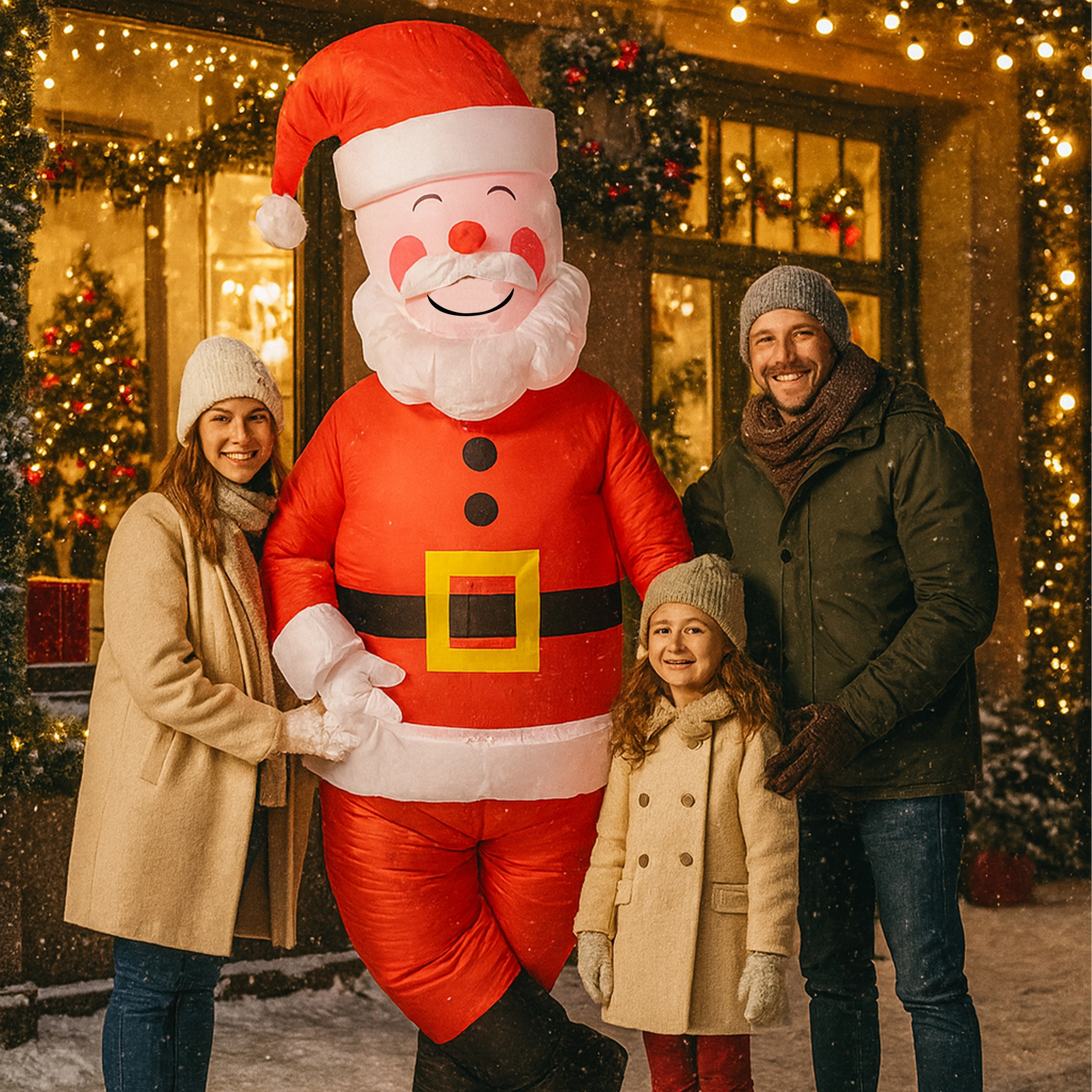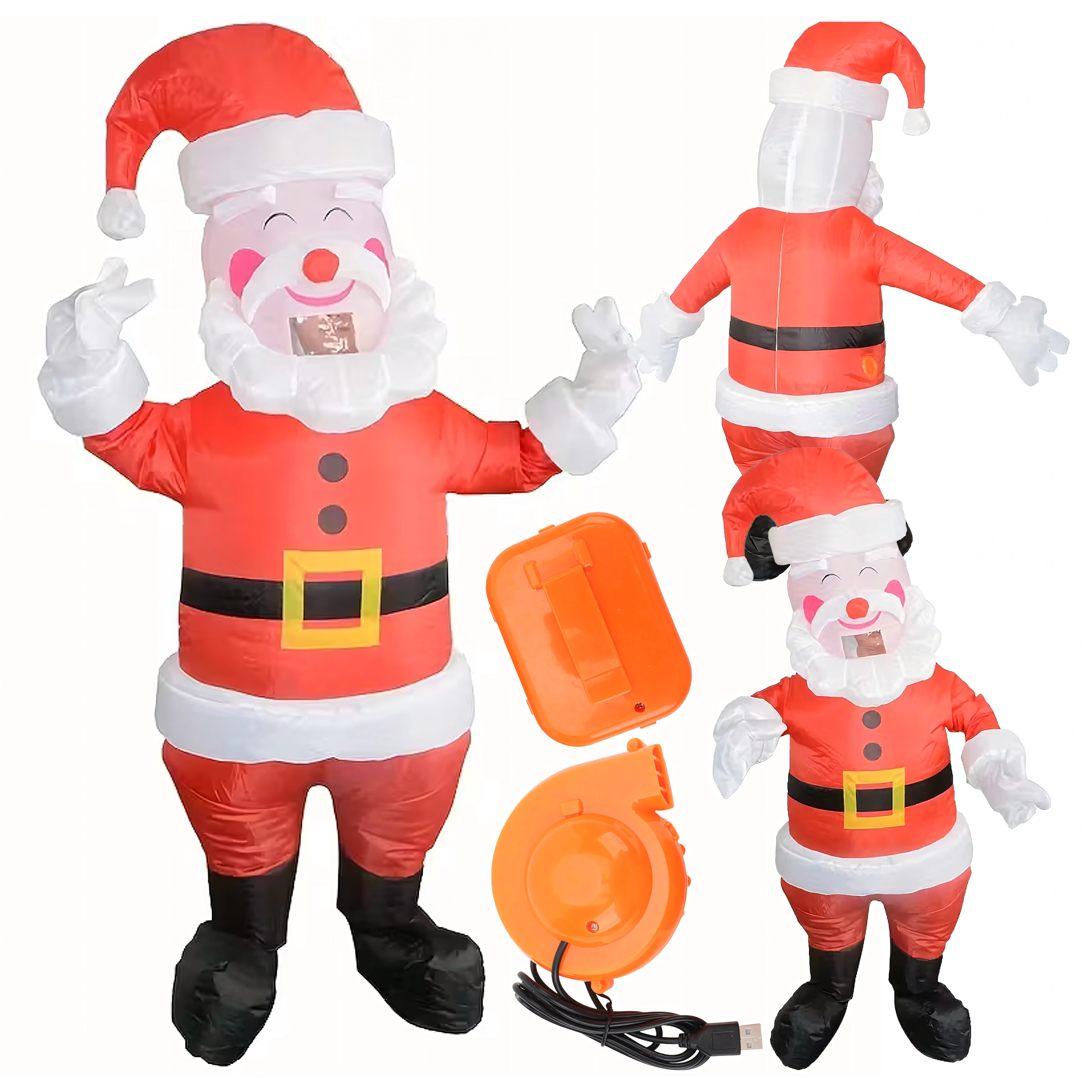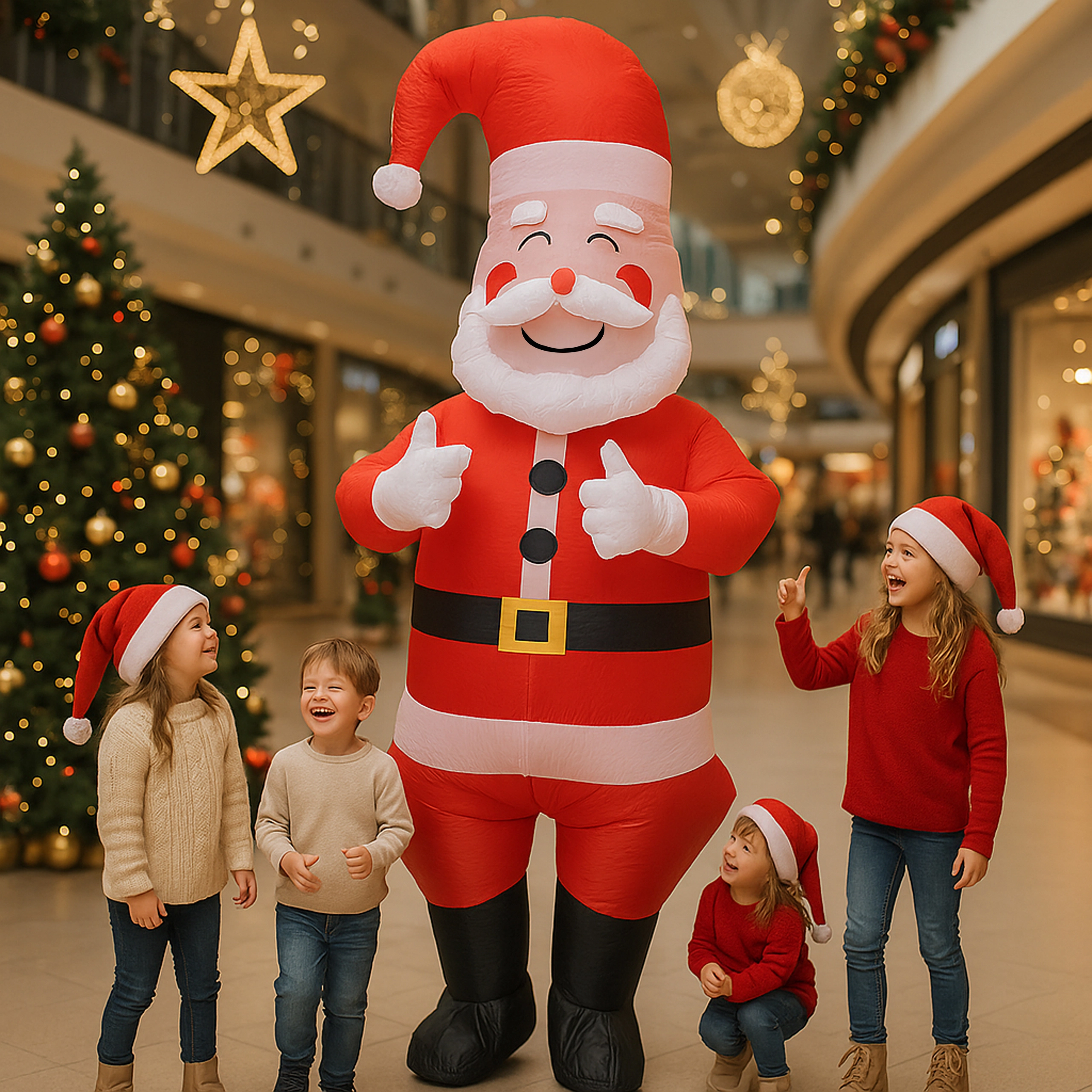 Zabawny i łatwy w użyciu nadmuchiwany kostium Mikołaja dla dorosłych (wzrost ok. 150–190 cm) jest idealny na świąteczne imprezy, eventy i domową zabawę. Lekki i wygodny materiał szybko wypełnia się powietrzem dzięki dołączonej turbinie, więc w kilka chwil stworzysz niezapomnianą, świąteczną atmosferę.