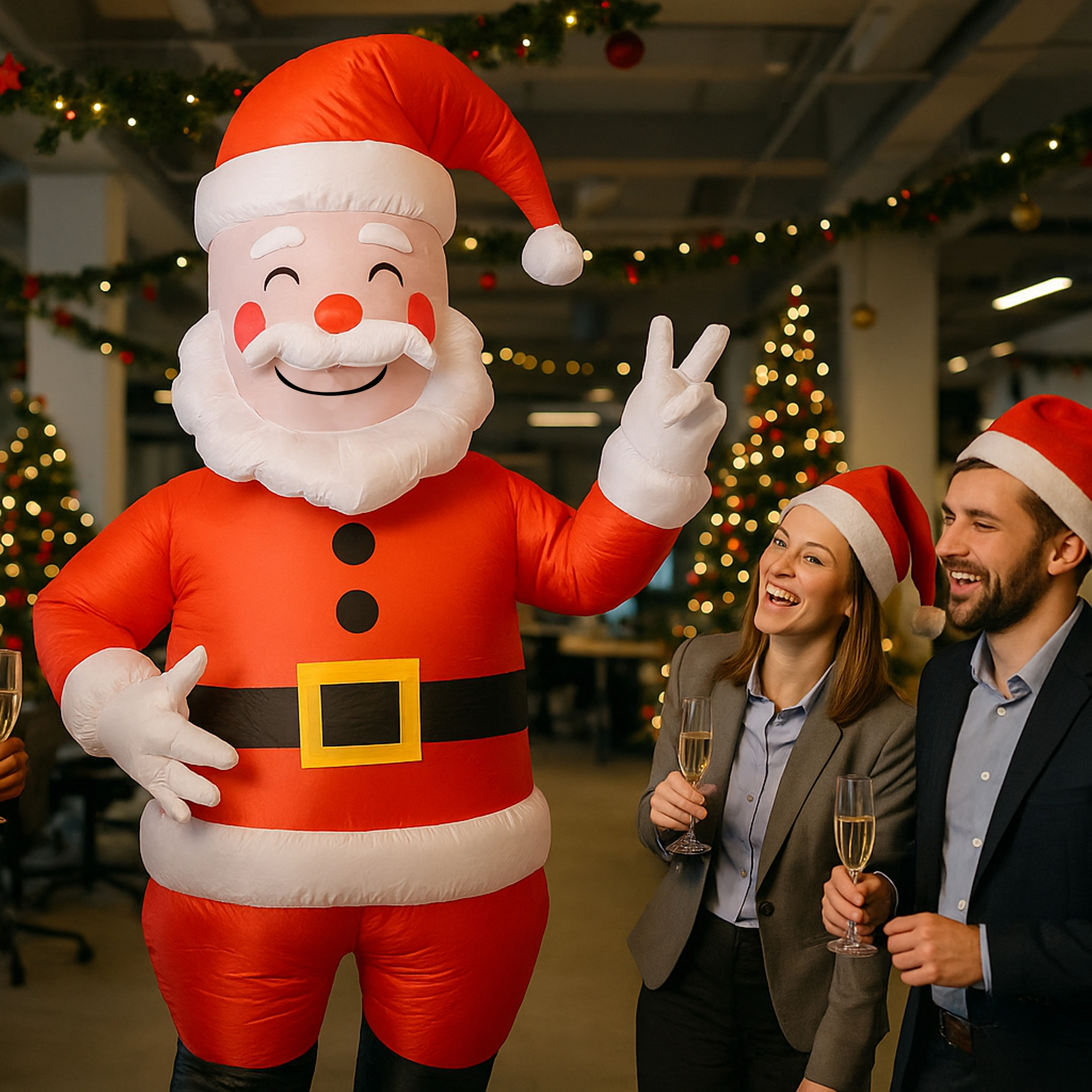 Wejdź w rolę Mikołaja w kilka minut! Ten nadmuchiwany kostium został zaprojektowany z myślą o łatwym zakładaniu, wygodnym noszeniu i wyrazistym efekcie wizualnym. Dzięki zintegrowanej dmuchawie/turbinie strój szybko się napełnia i utrzymuje kształt przez cały czas trwania wydarzenia. Uniwersalny rozmiar pasuje większości dorosłych (ok. 150–190 cm).