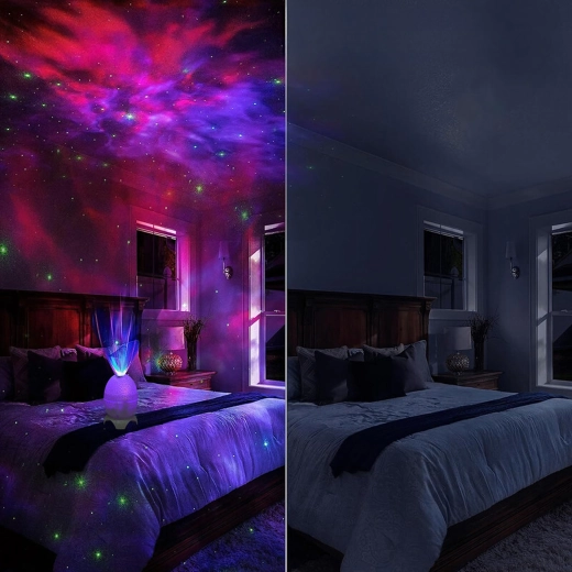 Wszystko w jednym: stylowa nocna lampka LED, projekcja gwiazd i bezprzewodowe odtwarzanie muzyki przez Bluetooth. Idealne do pokoju dziecięcego, sypialni i salonu.