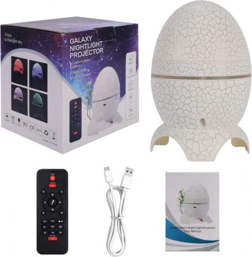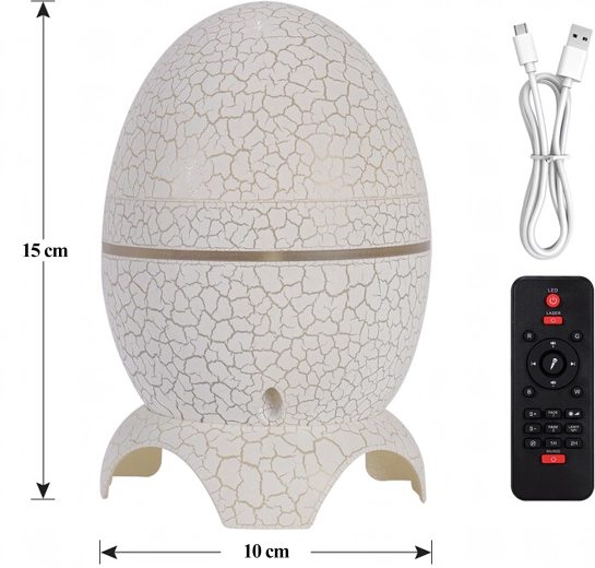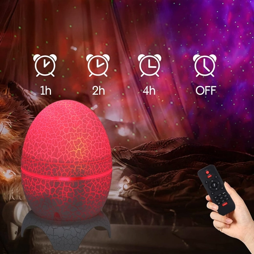 Zmień swój pokój w kolorową galaktykę z muzyką w tle. Ten oryginalny projektor w kształcie jajka dinozaura łączy w sobie designerską lampkę nocną, projektor gwiazd oraz głośnik Bluetooth w jednym. Stwórz magiczną atmosferę do relaksu, snu i zabawy.